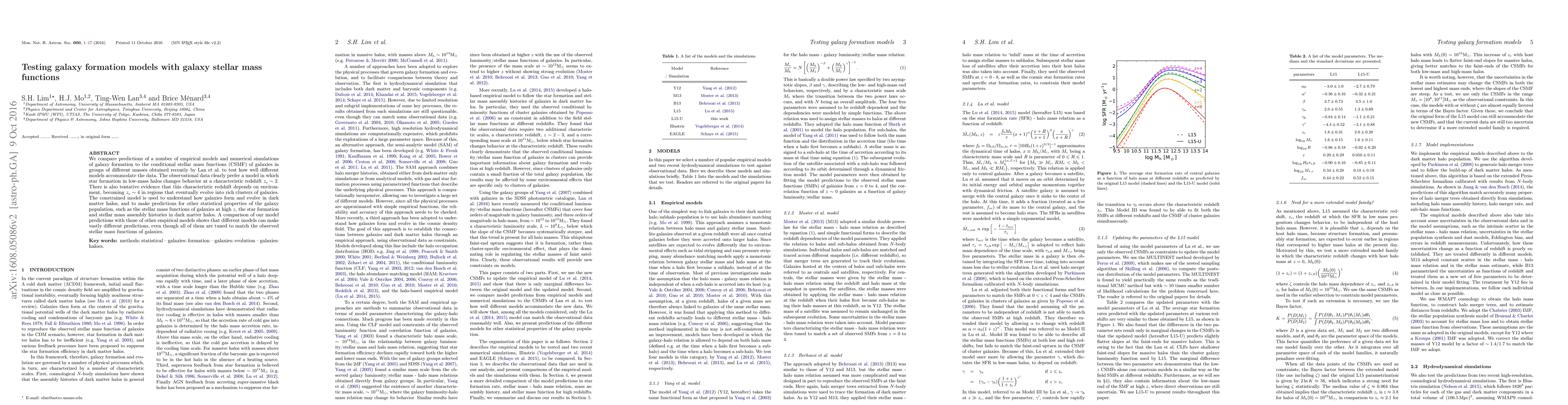 We compare predictions of a number of empirical models and numerical simulations of galaxy formation to the conditional stellar mass functions (CSMF)of galaxies in groups of different masses obtained recently by Lan et al. to test how well different models accommodate the data. The observational data clearly prefer a model in which star formation in low-mass halos changes behavior at a characteristic redshift $z_c\sim 2$. There is also tentative evidence that this characteristic redshift depends on environment, becoming $z_c\sim 4$ in regions that eventually evolve into rich clusters of galaxies. The constrained model is used to understand how galaxies form and evolve in dark matter halos, and to make predictions for other statistical properties of the galaxy population, such as the stellar mass functions of galaxies at high $z$, the star formation and stellar mass assembly histories in dark matter halos. A comparison of our model predictions with those of other empirical models shows that different models can make vastly different predictions, even though all of them are tuned to match the observed stellar mass functions of galaxies.