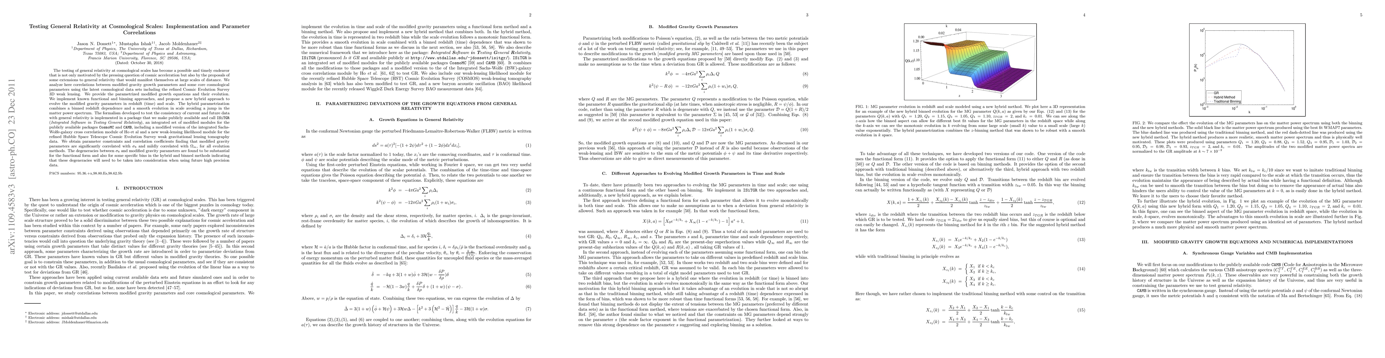 The testing of general relativity at cosmological scales has become a possible and timely endeavor that is not only motivated by the pressing question of cosmic acceleration but also by the proposals of some extensions to general relativity that would manifest themselves at large scales of distance. We analyze here correlations between modified gravity growth parameters and some core cosmological parameters using the latest cosmological data sets including the refined Cosmic Evolution Survey 3D weak lensing. We provide parametrized modified growth equations and their evolution. We implement known functional and binning approaches, and propose a new hybrid approach to evolve modified gravity parameters in redshift (time) and scale. The hybrid parametrization combines a binned redshift dependence and a smooth evolution in scale avoiding a jump in the matter power spectrum. The formalism developed to test the consistency of current and future data with general relativity is implemented in a package that we make publicly available and call ISiTGR (Integrated Software in Testing General Relativity), an integrated set of modified modules for the publicly available packages CosmoMC and CAMB, including a modified version of the integrated Sachs-Wolfe-galaxy cross correlation module of Ho et al and a new weak-lensing likelihood module for the refined HST-COSMOS weak lensing tomography data. We obtain parameter constraints and correlation coefficients finding that modified gravity parameters are significantly correlated with \sigma_8 and mildly correlated with \Omega_m, for all evolution methods. The degeneracies between \sigma_8 and modified gravity parameters are found to be substantial for the functional form and also for some specific bins in the hybrid and binned methods indicating that these degeneracies will need to be taken into consideration when using future high precision data.