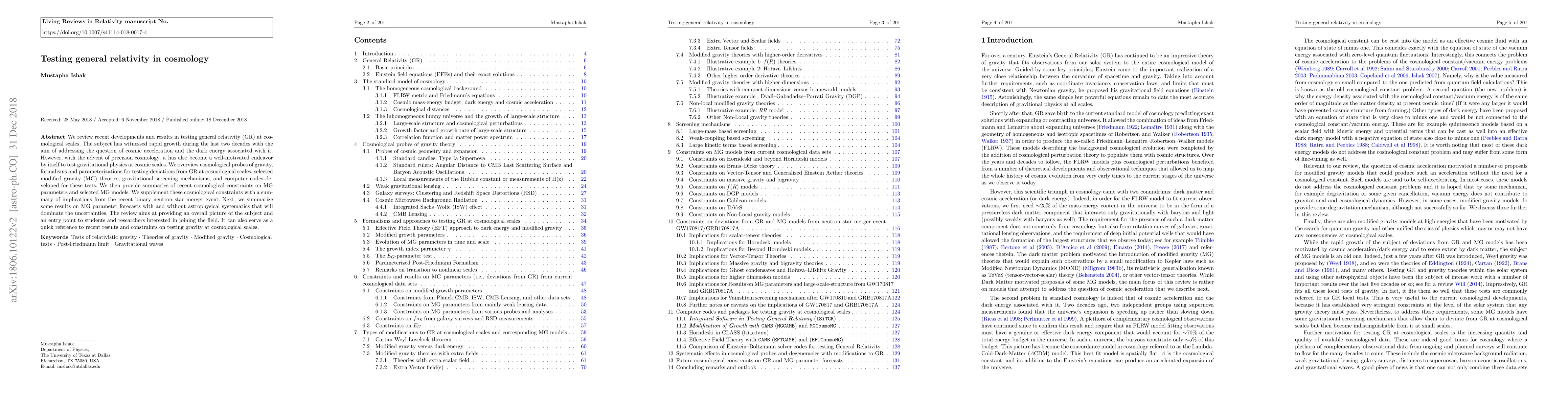 The review synthesizes a wide range of recent developments in testing GR through cosmological observations, providing a valuable resource for researchers in the field.