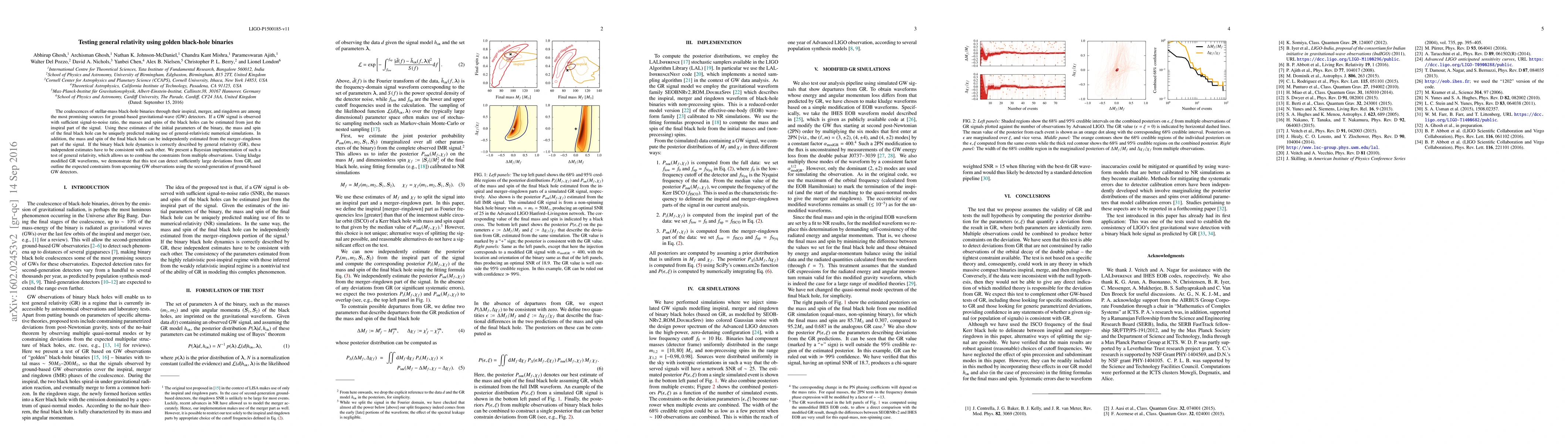 This research develops a Bayesian test to verify general relativity by comparing mass and spin estimates of black holes from different parts of coalescing binary black hole signals. It demonstrates the potential to detect deviations from GR using second-generation gravitational wave detectors.