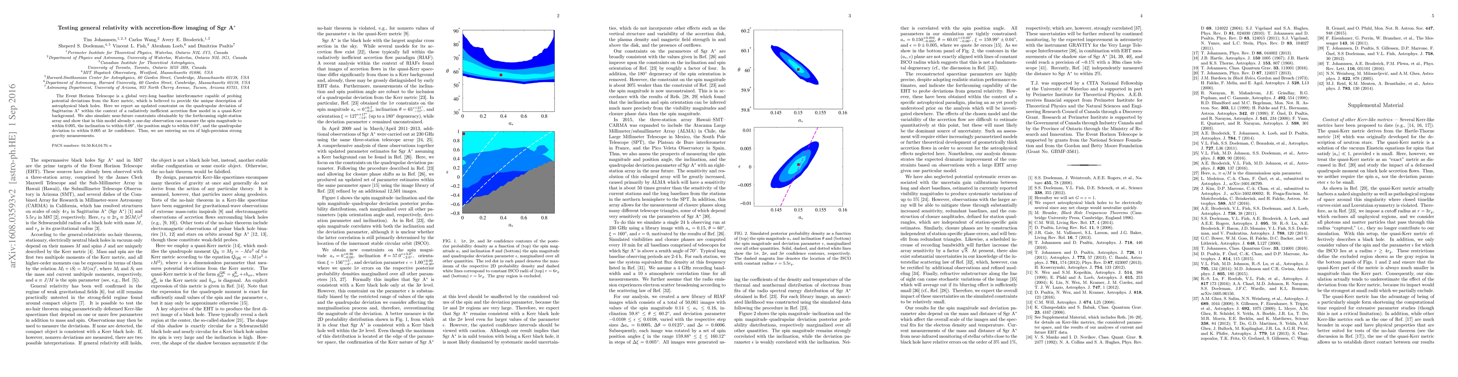 The Event Horizon Telescope provides updated constraints on Sagittarius A*'s deviation from the Kerr metric using an accretion flow model. Future observations with an eight-station array are expected to measure spin, inclination, position angle, and quadrupolar deviation precisely.
