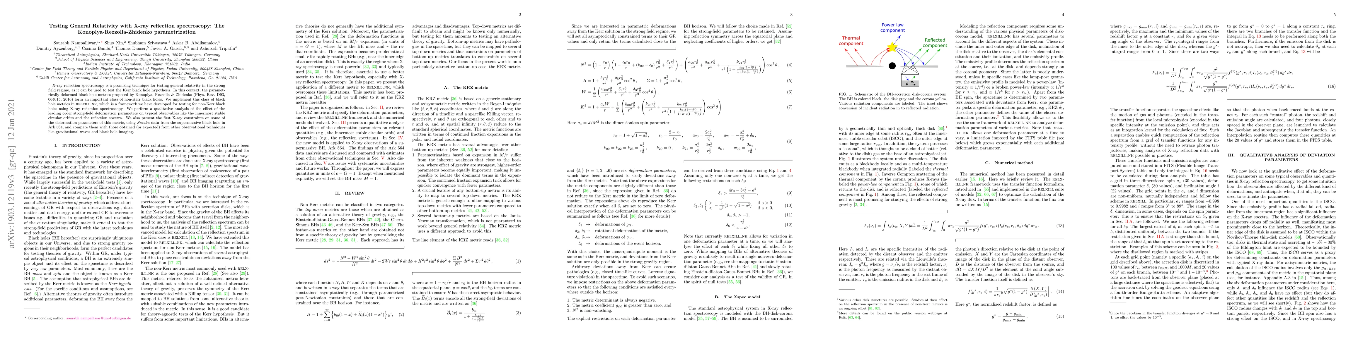 This paper explores the use of X-ray reflection spectroscopy to test general relativity through the Konoplya-Rezzolla-Zhidenko parametrization of non-Kerr black holes. The study introduces a framework for analyzing these metrics and presents initial X-ray constraints on their deformation parameters using data from the black hole in Ark~564.