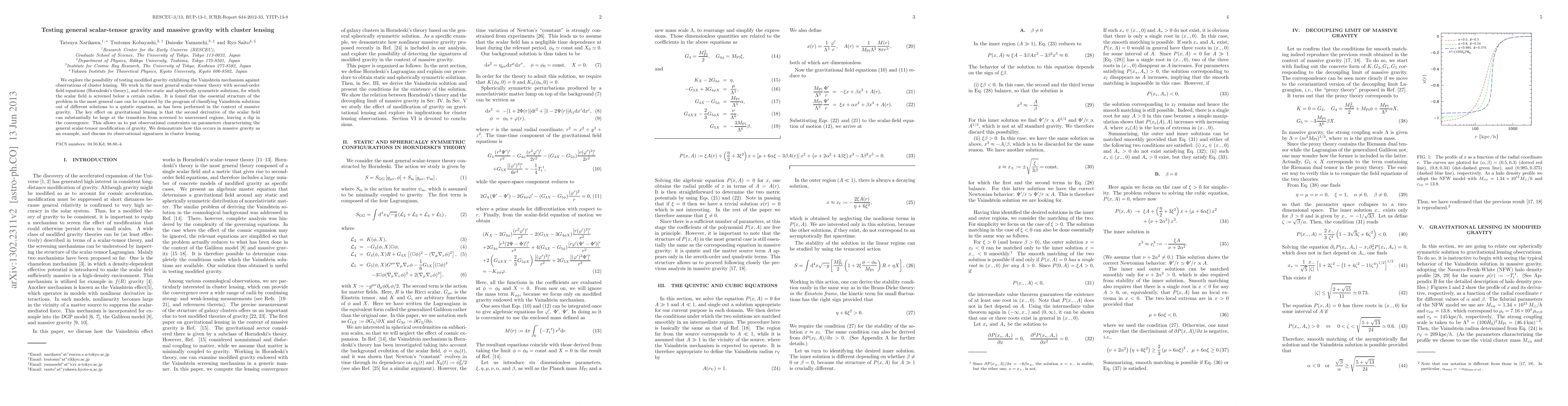 This paper investigates the potential of cluster lensing observations to test general scalar-tensor gravity theories, including those with the Vainshtein mechanism. It finds that the second derivative of the scalar field can significantly affect lensing, creating a dip in convergence that provides constraints on modified gravity parameters.
