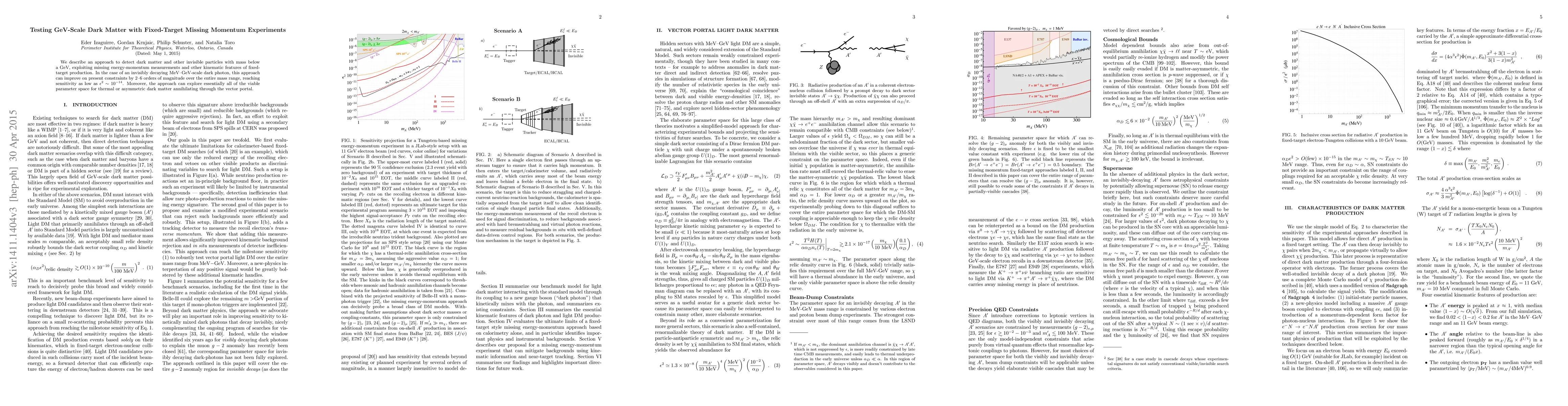 We describe an approach to detect dark matter and other invisible particles with mass below a GeV, exploiting missing energy-momentum measurements and other kinematic features of fixed-target production. In the case of an invisibly decaying MeV-GeV-scale dark photon, this approach can improve on present constraints by 2-6 orders of magnitude over the entire mass range, reaching sensitivity as low as $\epsilon^2\sim 10^{-14}$. Moreover, the approach can explore essentially all of the viable parameter space for thermal or asymmetric dark matter annihilating through the vector portal.