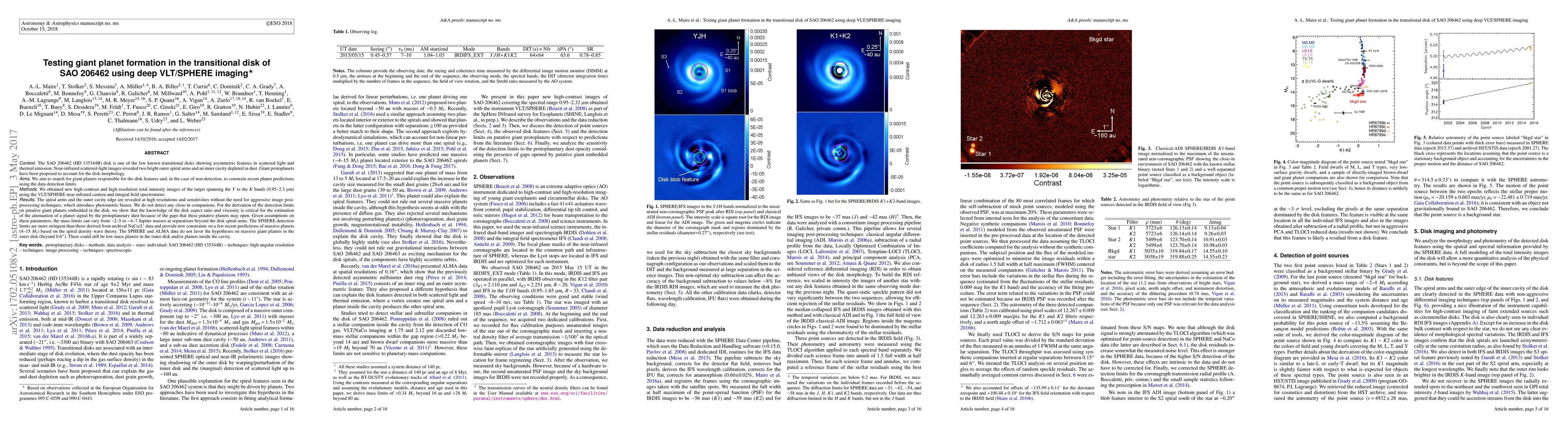 Context. The SAO 206462 (HD 135344B) disk is one of the few known transitional disks showing asymmetric features in scattered light and thermal emission. Near-infrared scattered-light images revealed two bright outer spiral arms and an inner cavity depleted in dust. Giant protoplanets have been proposed to account for the disk morphology. Aims. We aim to search for giant planets responsible for the disk features and, in the case of non-detection, to constrain recent planet predictions using the data detection limits. Methods. We obtained new high-contrast and high-resolution total intensity images of the target spanning the Y to the K bands (0.95-2.3 mic) using the VLT/SPHERE near-infrared camera and integral field spectrometer. Results. The spiral arms and the outer cavity edge are revealed at high resolutions and sensitivities without the need for image post-processing techniques, which introduce photometric biases. We do not detect any close-in companions. For the derivation of the detection limits on putative giant planets embedded in the disk, we show that the knowledge of the disk aspect ratio and viscosity is critical for the estimation of the attenuation of a planet signal by the protoplanetary dust because of the gaps that these putative planets may open. Given assumptions on these parameters, the mass limits can vary from ~2-5 to ~4-7 Jupiter masses at separations beyond the disk spiral arms. The SPHERE detection limits are more stringent than those derived from archival NaCo/L' data and provide new constraints on a few recent predictions of massive planets (4-15 MJ) based on the spiral density wave theory. The SPHERE and ALMA data do not favor the hypotheses on massive giant planets in the outer disk (beyond 0.6). There could still be low-mass planets in the outer disk and/or planets inside the cavity.