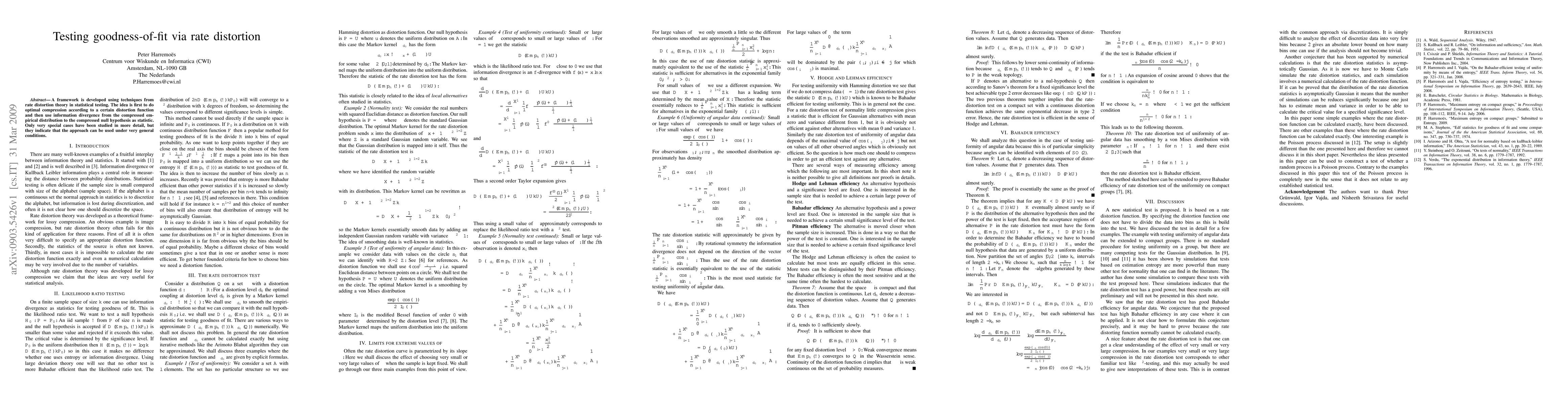A framework is developed using techniques from rate distortion theory in statistical testing. The idea is first to do optimal compression according to a certain distortion function and then use information divergence from the compressed empirical distribution to the compressed null hypothesis as statistic. Only very special cases have been studied in more detail, but they indicate that the approach can be used under very general conditions.