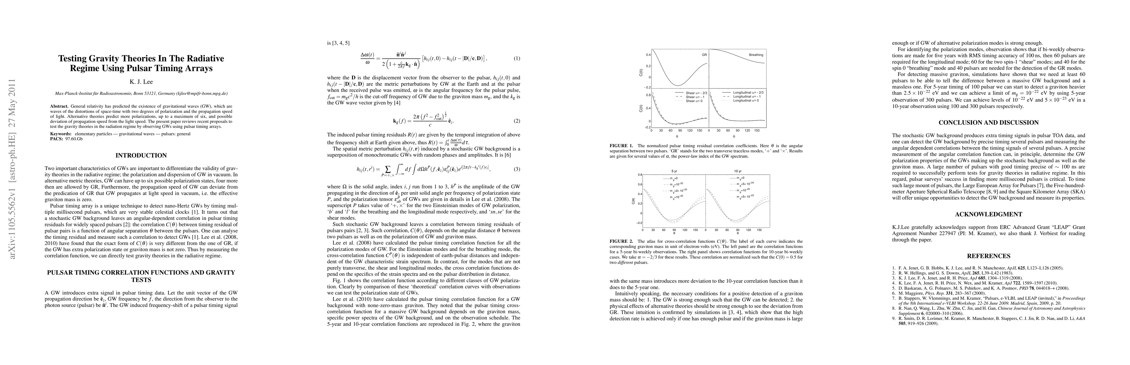 This paper reviews recent methods for testing alternative gravity theories using pulsar timing arrays to observe gravitational waves, focusing on deviations in polarization and propagation speed compared to predictions of general relativity.