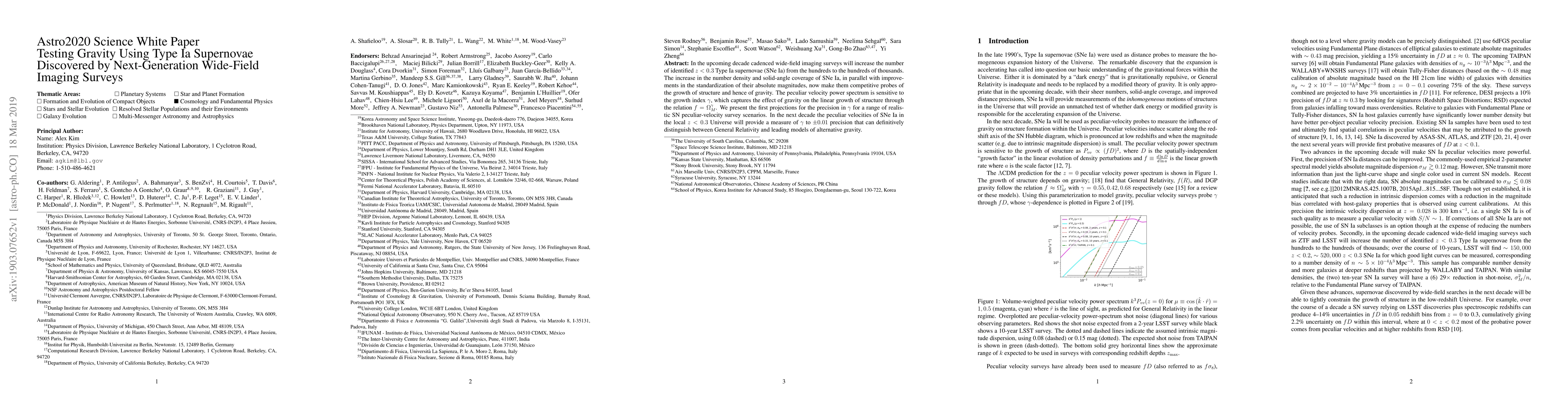 In the upcoming decade cadenced wide-field imaging surveys will increase the number of identified $z<0.3$ Type~Ia supernovae (SNe~Ia) from the hundreds to the hundreds of thousands. The increase in the number density and solid-angle coverage of SNe~Ia, in parallel with improvements in the standardization of their absolute magnitudes, now make them competitive probes of the growth of structure and hence of gravity. The peculiar velocity power spectrum is sensitive to the growth index $\gamma$, which captures the effect of gravity on the linear growth of structure through the relation $f=\Omega_M^\gamma$. We present the first projections for the precision in $\gamma$ for a range of realistic SN peculiar-velocity survey scenarios. In the next decade the peculiar velocities of SNe~Ia in the local $z<0.3$ Universe will provide a measure of $\gamma$ to $\pm 0.01$ precision that can definitively distinguish between General Relativity and leading models of alternative gravity.