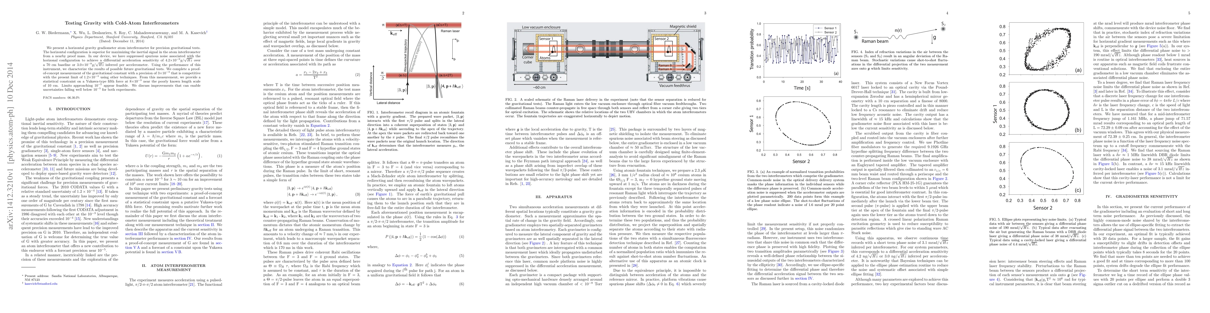 Researchers have developed a gravity gradiometer atom interferometer that achieved a sensitivity of 3 imes10^{-4} in measuring the gravitational constant, setting a statistical constraint on a possible Yukawa-type fifth force.