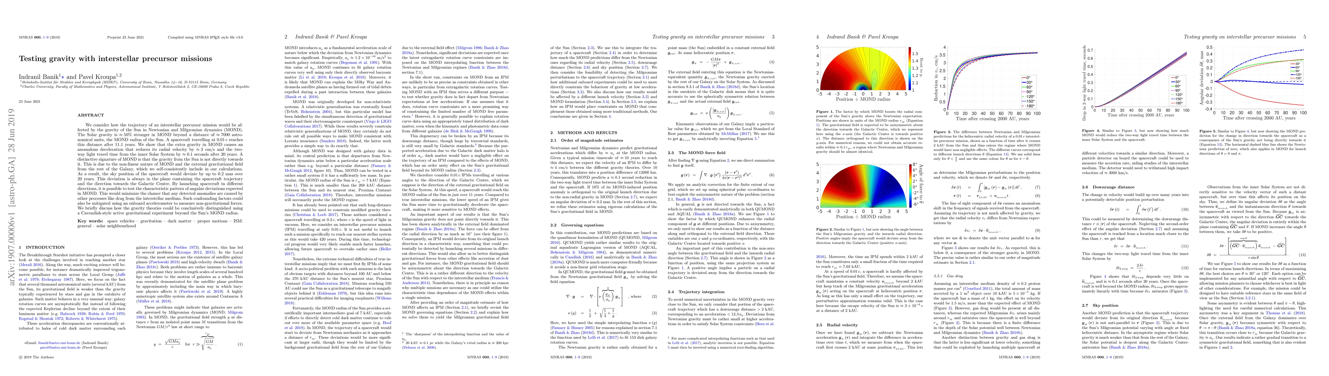 We consider how the trajectory of an interstellar precursor mission would be affected by the gravity of the Sun in Newtonian and Milgromian dynamics (MOND). The Solar gravity is ${\approx 50\%}$ stronger in MOND beyond a distance of ${\approx 7000}$ astronomical units, the MOND radius of the Sun. A spacecraft travelling at $0.01 \, c$ reaches this distance after 11.1 years. We show that the extra gravity in MOND causes an anomalous deceleration that reduces its radial velocity by ${\approx 3}$ cm/s and the two-way light travel time from the inner Solar System by ${\approx 0.1}$ seconds after 20 years. A distinctive signature of MOND is that the gravity from the Sun is not directly towards it. This is due to the non-linear nature of MOND and the external gravitational field from the rest of the Galaxy, which we self-consistently include in our calculations. As a result, the sky position of the spacecraft would deviate by up to 0.2 mas over 20 years. This deviation is always in the plane containing the spacecraft trajectory and the direction towards the Galactic Centre. By launching spacecraft in different directions, it is possible to test the characteristic pattern of angular deviations expected in MOND. This would minimize the chance that any detected anomalies are caused by other processes like drag from the interstellar medium. Such confounding factors could also be mitigated using an onboard accelerometer to measure non-gravitational forces. We briefly discuss how the gravity theories could be conclusively distinguished using a Cavendish-style active gravitational experiment beyond the Sun's MOND radius.