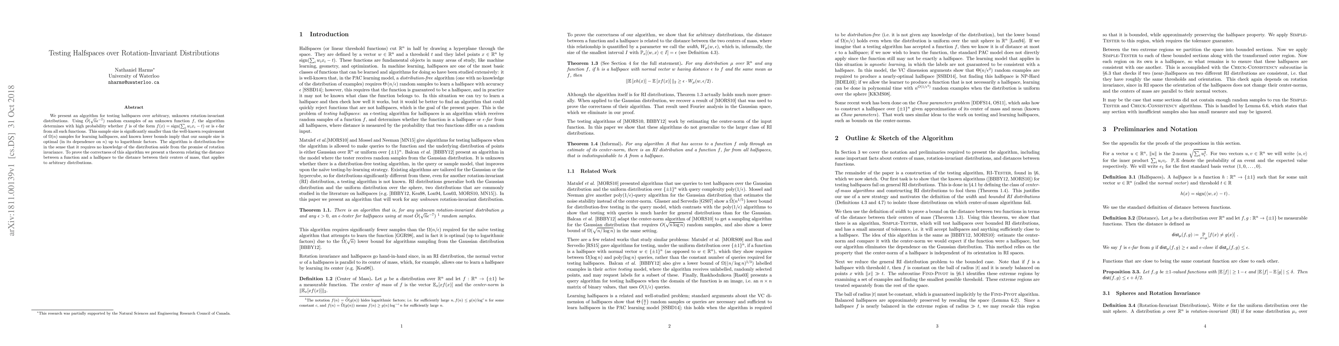 This paper introduces an efficient algorithm for testing whether an unknown function is a rotation-invariant halfspace using $\tilde O(\sqrt{n}\epsilon^{-7})$ samples, significantly fewer than the $\Omega(n)$ typically required. The algorithm leverages a novel theorem linking function distance to center of mass distance, proving its correctness under rotation-invariant distributions.