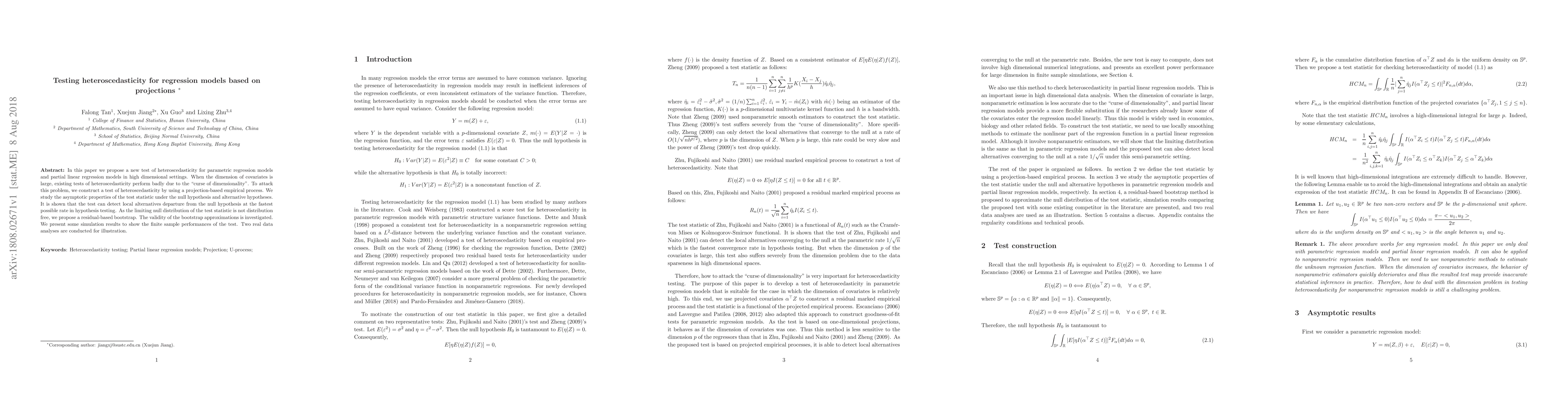 This paper introduces a new test for heteroscedasticity in high-dimensional parametric and partial linear regression models, addressing the limitations of existing tests due to the curse of dimensionality. The proposed projection-based test achieves optimal detection rates and employs a residual-based bootstrap for accurate distribution approximation.