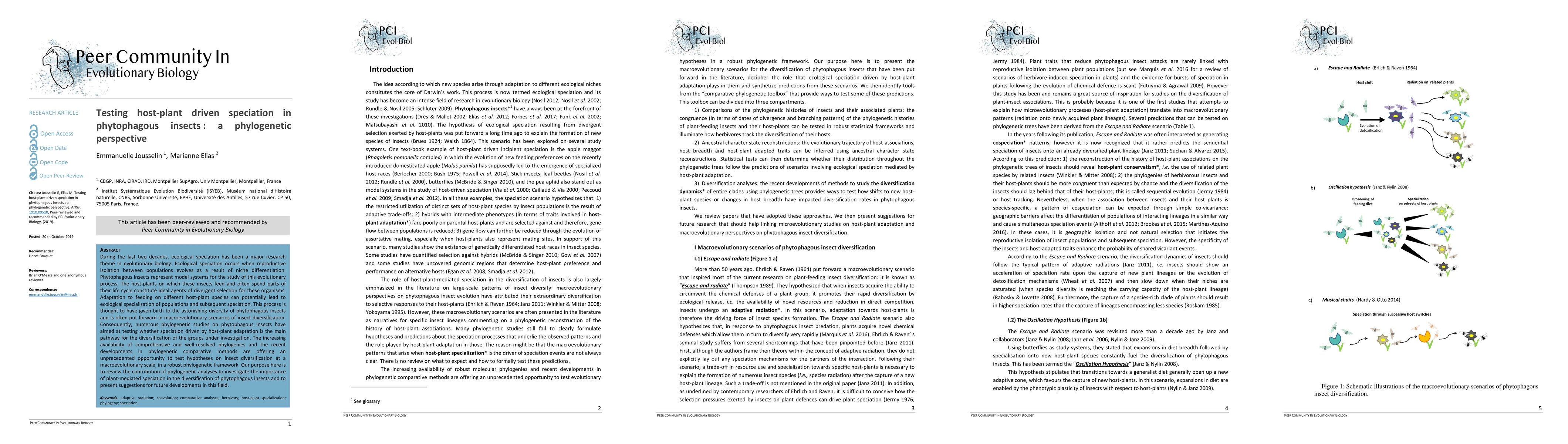 This paper reviews how phylogenetic analyses can test the hypothesis that host-plant adaptation drives speciation in phytophagous insects, contributing to their diversification. It highlights the potential of modern phylogenetic methods to robustly investigate macroevolutionary patterns in these insects.