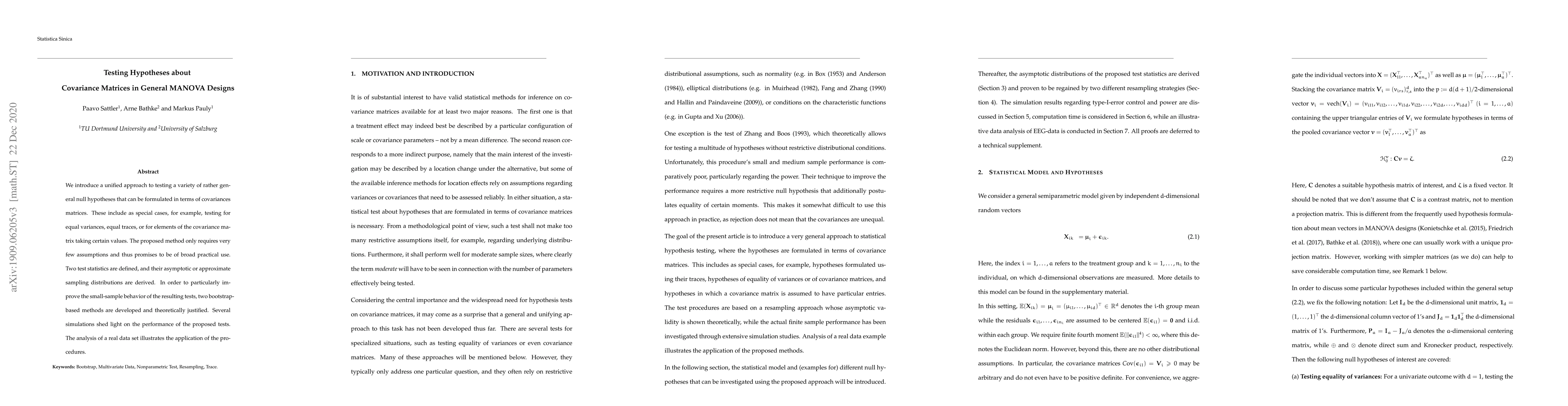 This paper proposes a unified approach for testing various hypotheses about covariance matrices in general MANOVA designs, requiring minimal assumptions. It introduces two test statistics and develops bootstrap-based methods to enhance small-sample performance, supported by simulations and a real data analysis.