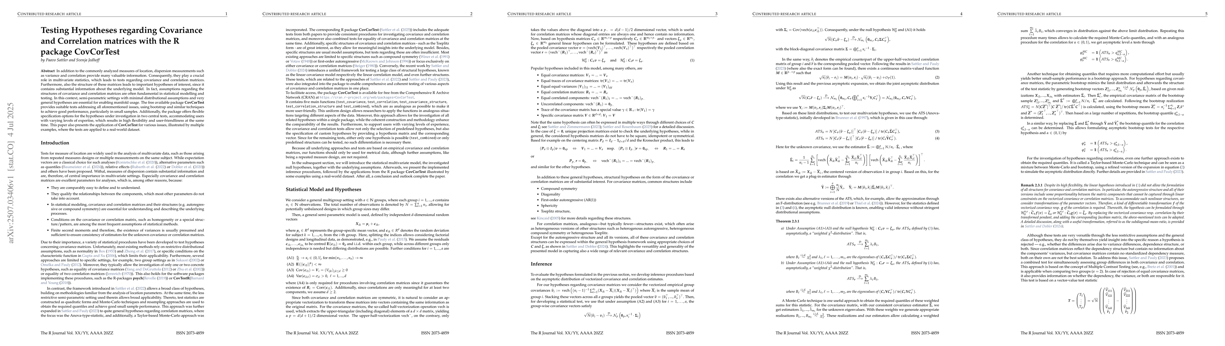 A new statistical framework was developed to handle patterns and structures in covariance and correlation matrices, which can be used to detect certain types of relationships between variables.