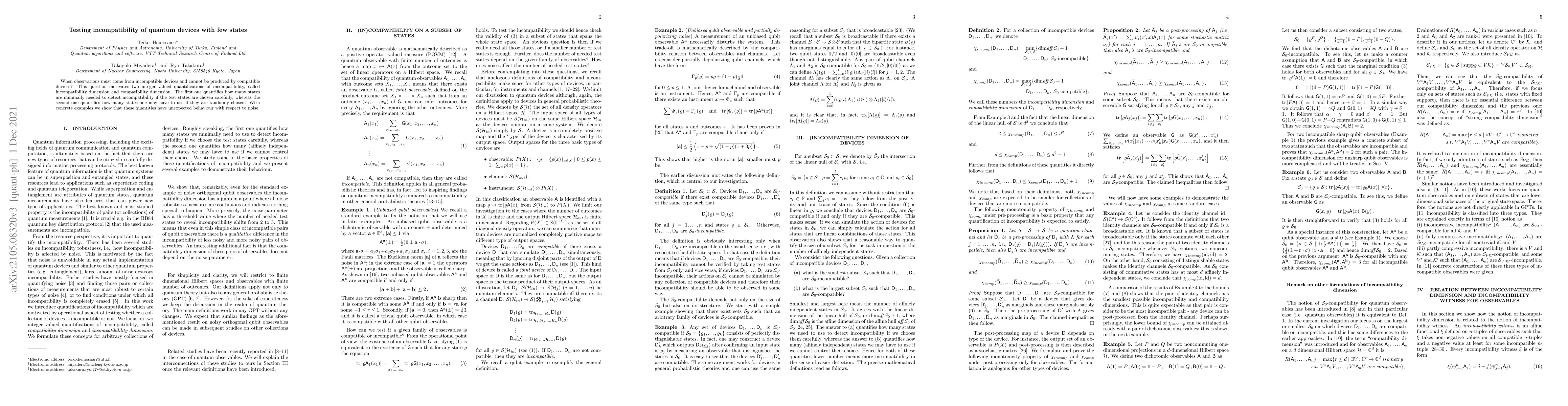 When observations must come from incompatible devices and cannot be produced by compatible devices? This question motivates two integer valued quantifications of incompatibility, called incompatibility dimension and compatibility dimension. The first one quantifies how many states are minimally needed to detect incompatibility if the test states are chosen carefully, whereas the second one quantifies how many states one may have to use if they are randomly chosen. With concrete examples we show that these quantities have unexpected behaviour with respect to noise.