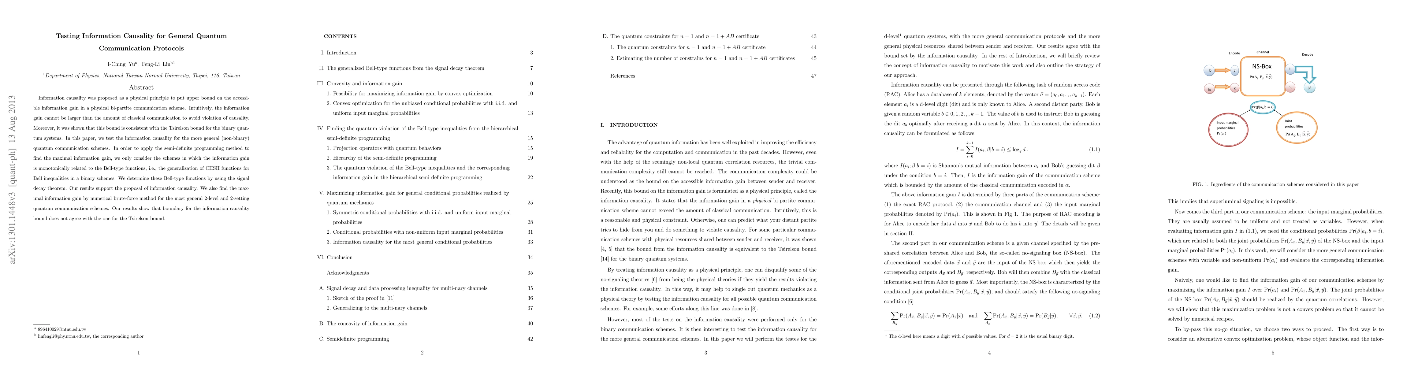 Information causality was proposed as a physical principle to put upper bound on the accessible information gain in a physical bi-partite communication scheme. Intuitively, the information gain cannot be larger than the amount of classical communication to avoid violation of causality. Moreover, it was shown that this bound is consistent with the Tsirelson bound for the binary quantum systems. In this paper, we test the information causality for the more general (non-binary) quantum communication schemes. In order to apply the semi-definite programming method to find the maximal information gain, we only consider the schemes in which the information gain is monotonically related to the Bell-type functions, i.e., the generalization of CHSH functions for Bell inequalities in a binary schemes. We determine these Bell-type functions by using the signal decay theorem. Our results support the proposal of information causality. We also find the maximal information gain by numerical brute-force method for the most general 2-level and 2-setting quantum communication schemes. Our results show that boundary for the information causality bound does not agree with the one for the Tsirelson bound.