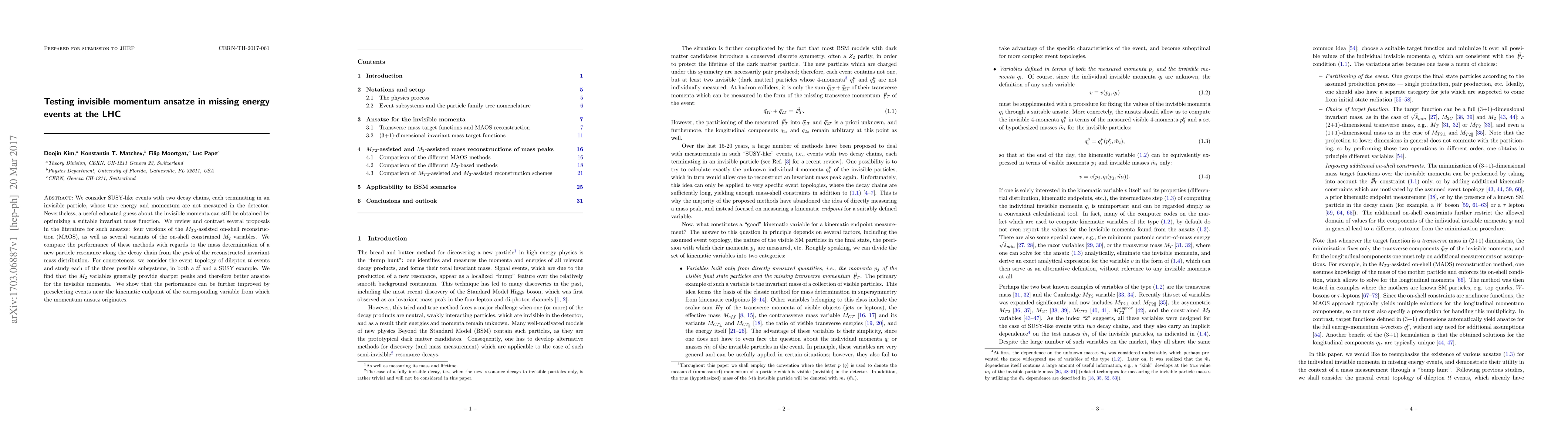 We consider SUSY-like events with two decay chains, each terminating in an invisible particle, whose true energy and momentum are not measured in the detector. Nevertheless, a useful educated guess about the invisible momenta can still be obtained by optimizing a suitable invariant mass function. We review and contrast several proposals in the literature for such ansatze: four versions of the M_T2-assisted on-shell reconstruction (MAOS), as well as several variants of the on-shell constrained M_2 variables. We compare the performance of these methods with regards to the mass determination of a new particle resonance along the decay chain from the peak of the reconstructed invariant mass distribution. For concreteness, we consider the event topology of dilepton ttbar events and study each of the three possible subsystems, in both a ttbar and a SUSY example. We find that the M_2 variables generally provide sharper peaks and therefore better ansatze for the invisible momenta. We show that the performance can be further improved by preselecting events near the kinematic endpoint of the corresponding variable from which the momentum ansatz originates.