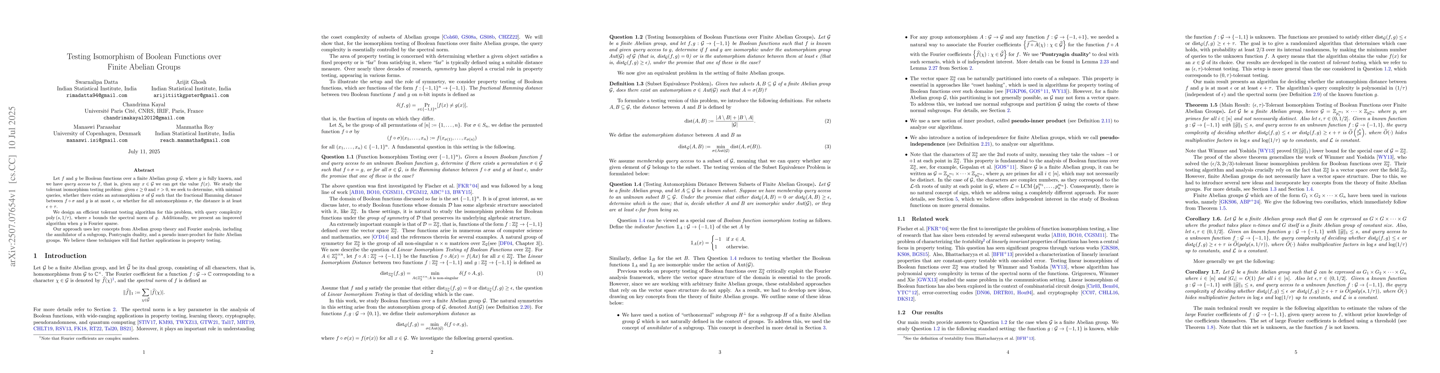 Let $f$ and $g$ be Boolean functions over a finite Abelian group $\mathcal{G}$, where $g$ is fully known, and we have {\em query access} to $f$, that is, given any $x \in \mathcal{G}$ we can get the value $f(x)$. We study the tolerant isomorphism testing problem: given $\epsilon \geq 0$ and $\tau > 0$, we seek to determine, with minimal queries, whether there exists an automorphism $\sigma$ of $\mathcal{G}$ such that the fractional Hamming distance between $f \circ \sigma$ and $g$ is at most $\epsilon$, or whether for all automorphisms $\sigma$, the distance is at least $\epsilon + \tau$. We design an efficient tolerant testing algorithm for this problem, with query complexity $\mathrm{poly}\left( s, 1/\tau \right)$, where $s$ bounds the spectral norm of $g$. Additionally, we present an improved algorithm when $g$ is Fourier sparse. Our approach uses key concepts from Abelian group theory and Fourier analysis, including the annihilator of a subgroup, Pontryagin duality, and a pseudo inner-product for finite Abelian groups. We believe these techniques will find further applications in property testing.