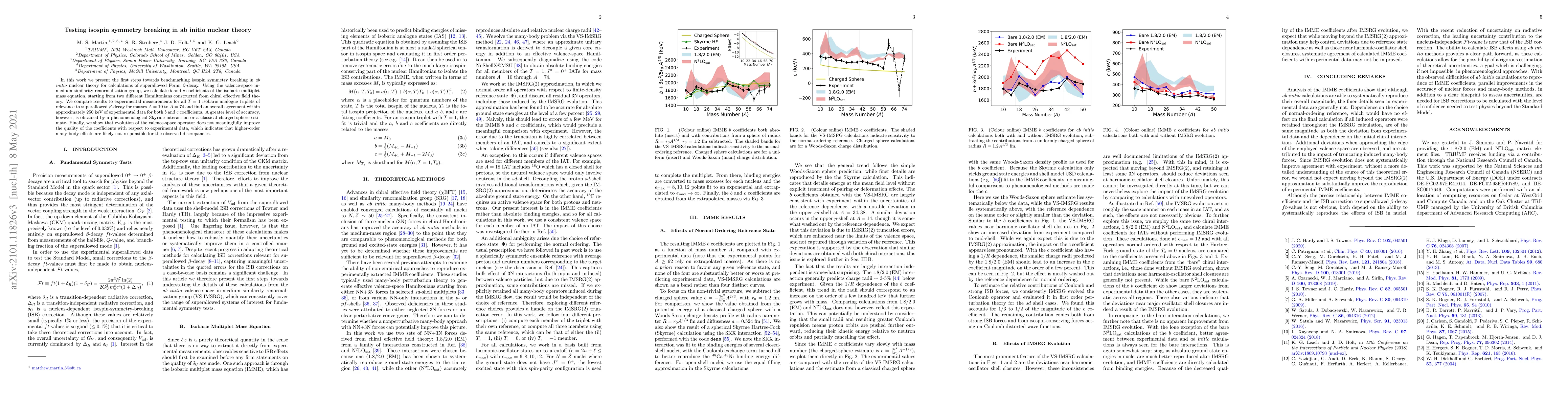 This paper benchmarks isospin symmetry breaking in ab initio nuclear theory for superallowed Fermi β-decay, finding agreement within 250 keV for b and c coefficients. Higher-order many-body effects are unlikely to account for discrepancies, suggesting room for improvement beyond current theoretical models.