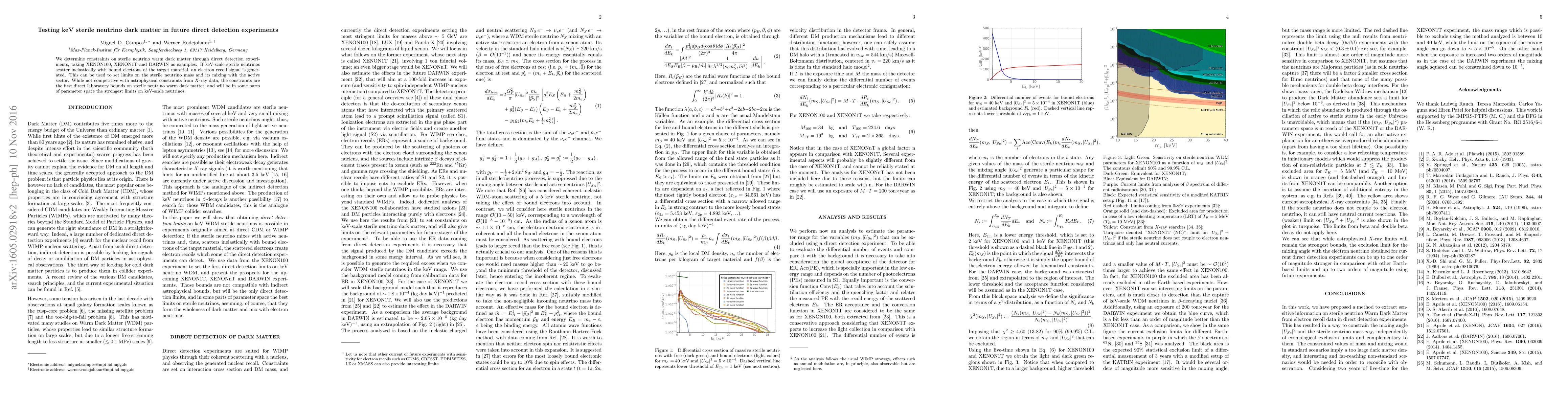This paper sets direct laboratory constraints on keV sterile neutrino warm dark matter using future direct detection experiments like XENON100, XENON1T, and DARWIN. These experiments can detect electron recoil signals from inelastic scattering of keV-scale sterile neutrinos, providing the first direct bounds on such neutrinos and potentially stronger limits in some parameter spaces compared to astrophysical constraints.
