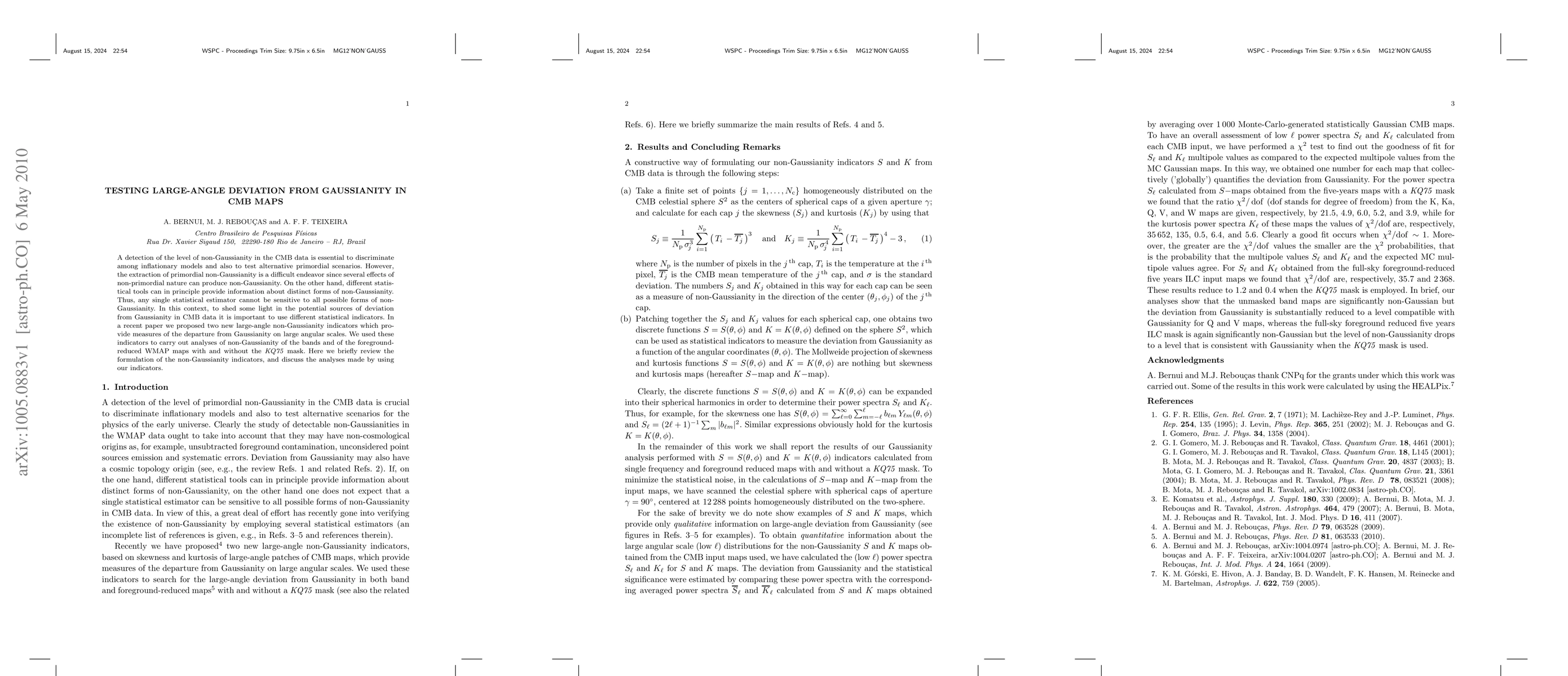 This paper proposes two new statistical indicators for detecting large-angle non-Gaussianity in CMB maps, aiming to distinguish between inflationary models and alternative primordial scenarios. The authors analyze the WMAP data using these indicators to assess deviations from Gaussianity.