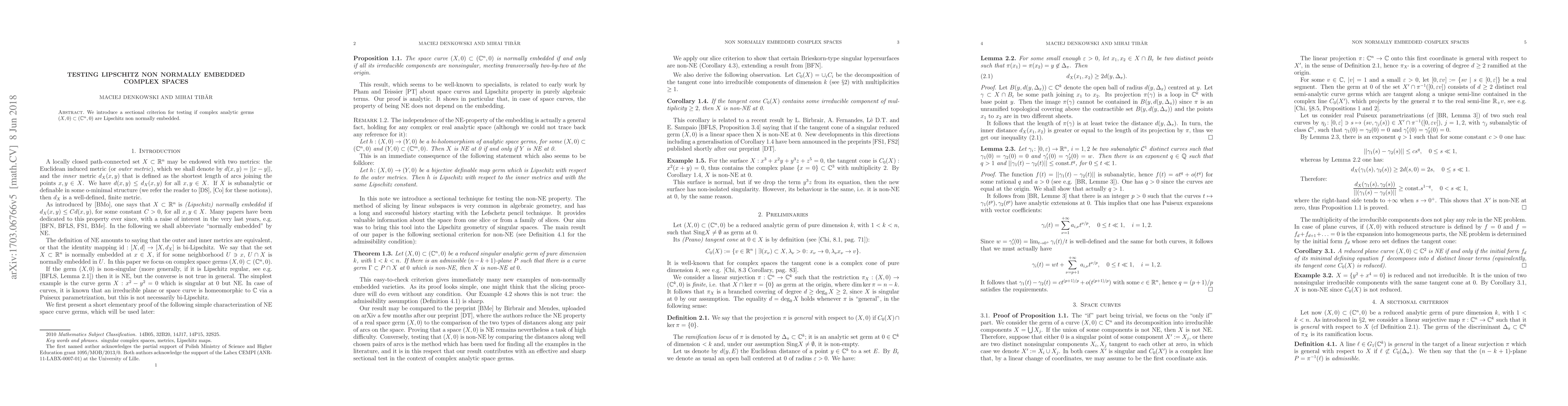 We introduce a sectional criterion for testing if complex analytic germs $(X,0) \subset (\bC^n, 0)$ are Lipschitz non normally embedded.