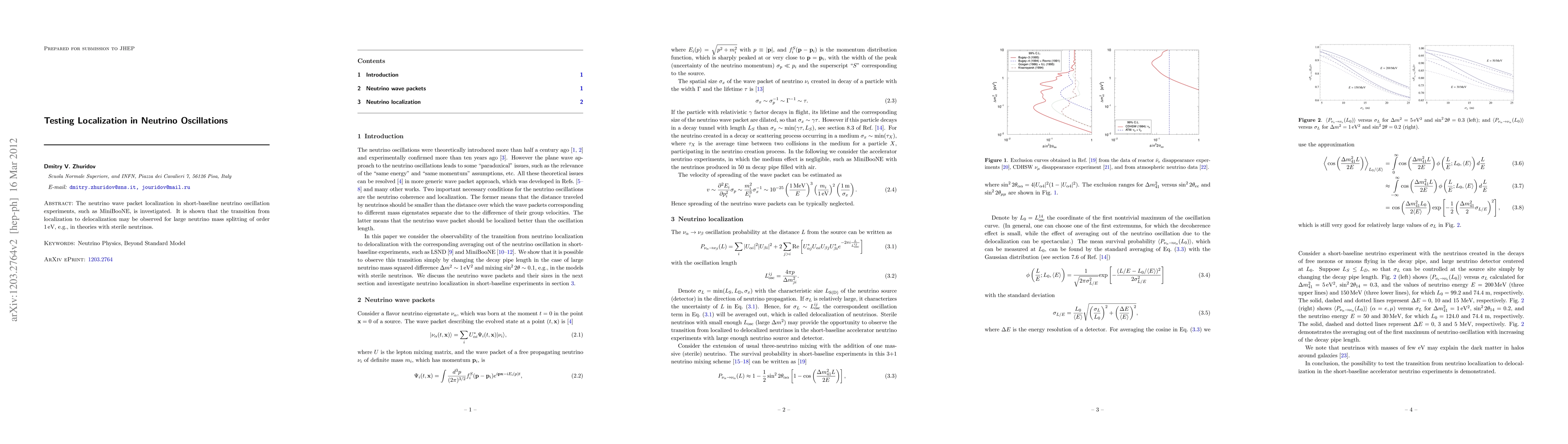 The neutrino wave packet localization in short-baseline neutrino oscillation experiments, such as MiniBooNE, is investigated. It is shown that the transition from localization to delocalization may be observed for large neutrino mass splitting of order 1 eV, e.g., in theories with sterile neutrinos.