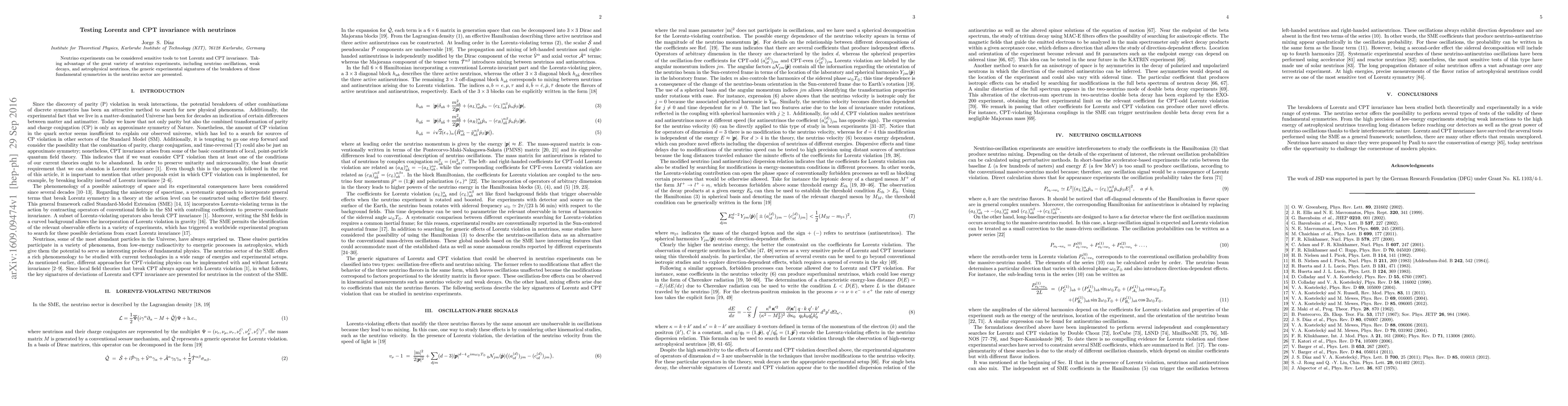 This paper explores the potential of neutrino experiments to test Lorentz and CPT invariance, presenting the experimental signatures of any breakdown of these fundamental symmetries through neutrino oscillations, weak decays, and astrophysical neutrinos.