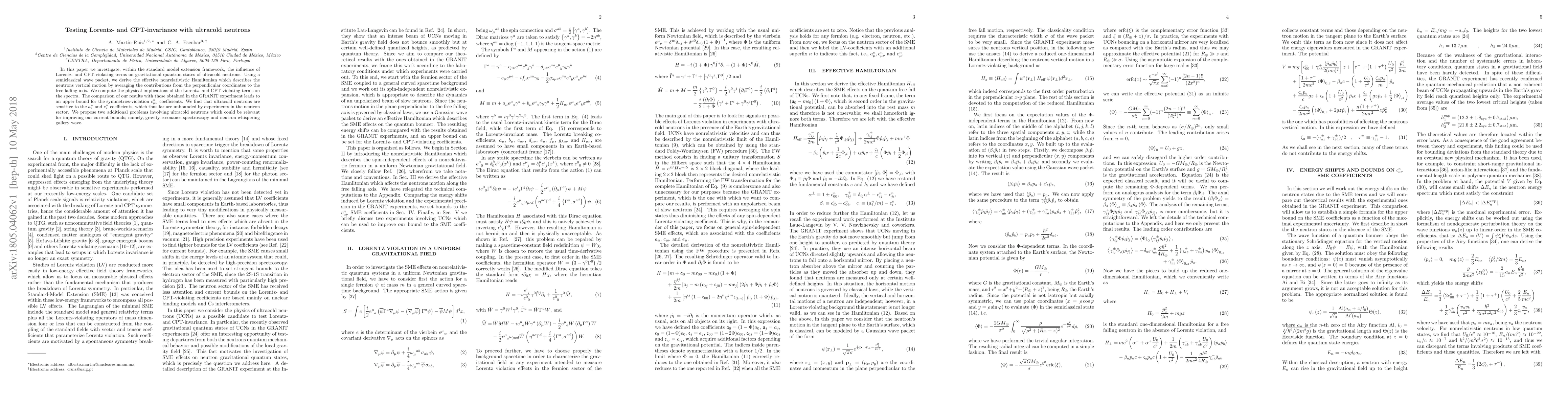 This paper examines the effects of Lorentz- and CPT-violating terms on ultracold neutrons using a semiclassical wave packet approach, deriving an effective nonrelativistic Hamiltonian. The study finds that ultracold neutrons are sensitive to previously unbounded coefficients, suggesting potential for further experimental improvements.