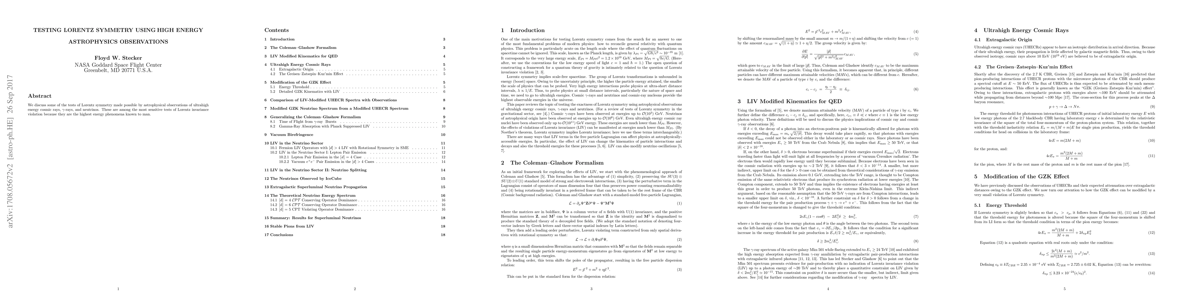 This paper explores the potential of high energy astrophysical observations, such as ultrahigh energy cosmic rays, gamma-rays, and neutrinos, to test the validity of Lorentz symmetry, offering some of the most sensitive tests of possible Lorentz symmetry violations due to their extreme energies.
