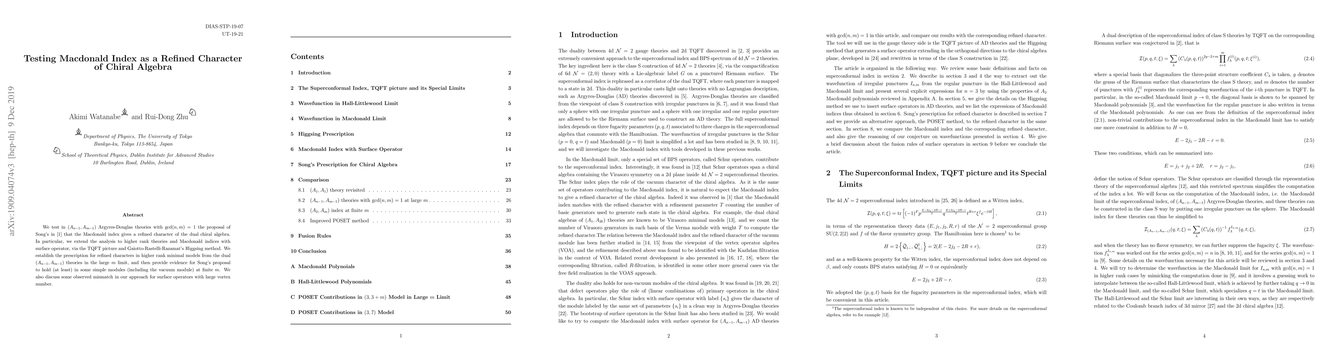 We test in $(A_{n-1},A_{m-1})$ Argyres-Douglas theories with $\mathrm{gcd}(n,m)=1$ the proposal of Song's in arXiv:1612.08956 that the Macdonald index gives a refined character of the dual chiral algebra. In particular, we extend the analysis to higher rank theories and Macdonald indices with surface operator, via the TQFT picture and Gaiotto-Rastelli-Razamat's Higgsing method. We establish the prescription for refined characters in higher rank minimal models from the dual $(A_{n-1},A_{m-1})$ theories in the large $m$ limit, and then provide evidence for Song's proposal to hold (at least) in some simple modules (including the vacuum module) at finite $m$. We also discuss some observed mismatch in our approach.