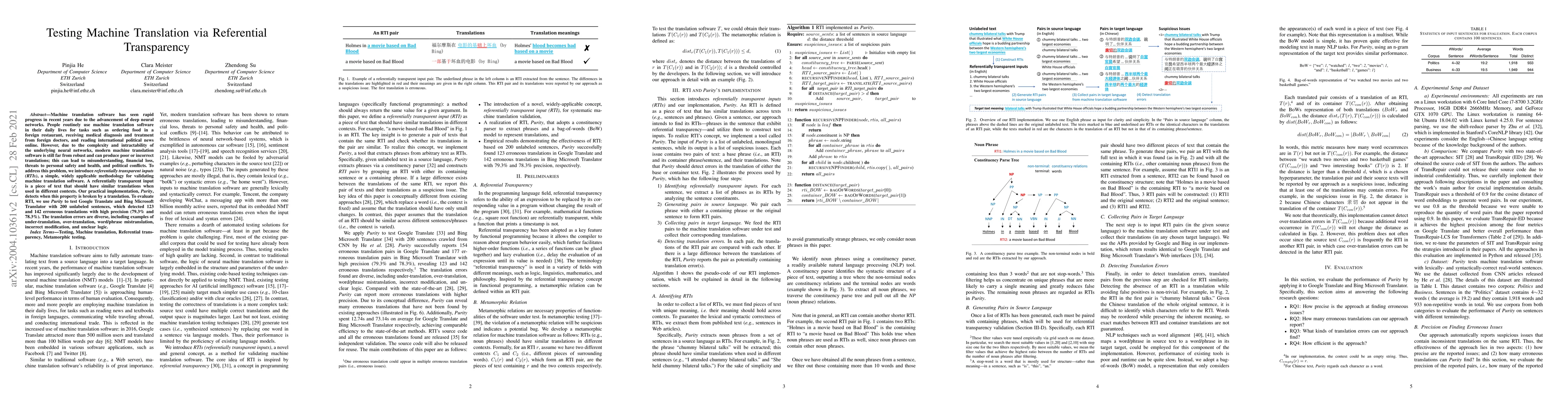 This paper introduces a methodology called referentially transparent inputs (RTIs) to validate machine translation software, aiming to improve its robustness. The practical tool Purity detects instances where RTIs are violated, leading to erroneous translations, and tests it on Google Translate and Bing Microsoft Translator, finding numerous translation errors.