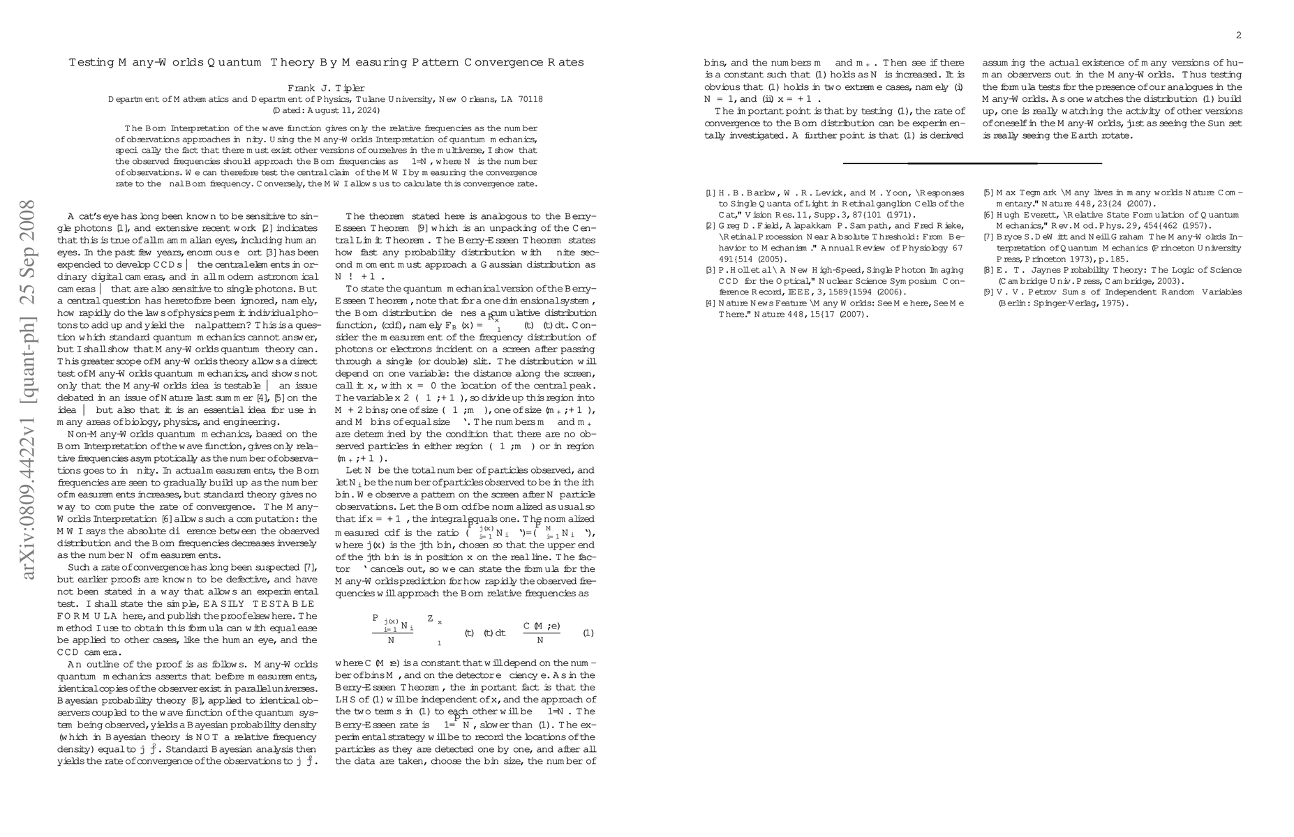 The Born Interpretation of the wave function gives only the relative frequencies as the number of observations approaches infinity. Using the Many-Worlds Interpretation of quantum mechanics, specifically the fact that there must exist other versions of ourselves in the multiverse, I show that the observed frequencies should approach the Born frequencies as 1/N, where N is the number of observations. In the body of the paper I state this convergence rate precisely as AN EASILY TESTABLE FORMULA. We can therefore test the central claim of the MWI by measuring the convergence rate to the final Born frequency. Conversely, the MWI allows us to calculate this convergence rate.