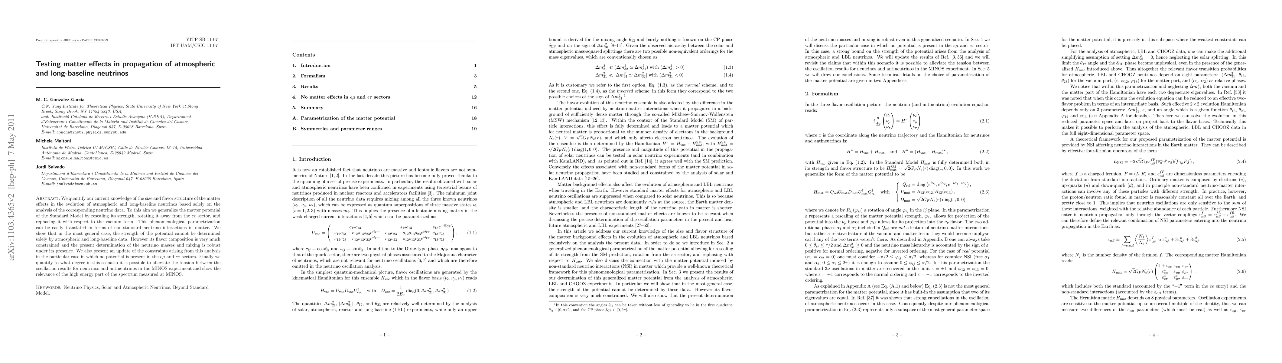 We quantify our current knowledge of the size and flavor structure of the matter effects in the evolution of atmospheric and long-baseline neutrinos based solely on the analysis of the corresponding neutrino data. To this aim we generalize the matter potential of the Standard Model by rescaling its strength, rotating it away from the e-e sector, and rephasing it with respect to the vacuum term. This phenomenological parametrization can be easily translated in terms of non-standard neutrino interactions in matter. We show that in the most general case, the strength of the potential cannot be determined solely by atmospheric and long-baseline data. However its flavor composition is very much constrained and the present determination of the neutrino masses and mixing is robust under its presence. We also present an update of the constraints arising from this analysis in the particular case in which no potential is present in the e-mu and e-tau sectors. Finally we quantify to what degree in this scenario it is possible to alleviate the tension between the oscillation results for neutrinos and antineutrinos in the MINOS experiment and show the relevance of the high energy part of the spectrum measured at MINOS.