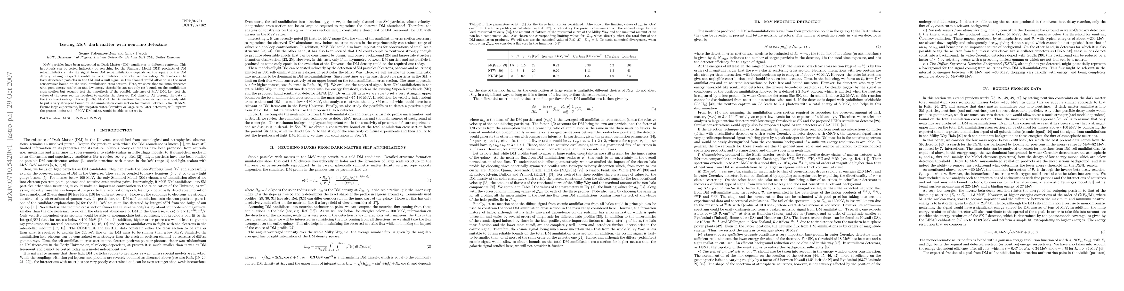 This paper explores the potential of neutrino detectors to test the hypothesis of MeV dark matter by searching for Standard Model products from DM self-annihilations. Current data from Super-Kamiokande already sets stringent bounds on the annihilation cross section for MeV dark matter, and future large-scale experiments promise even better detection capabilities.