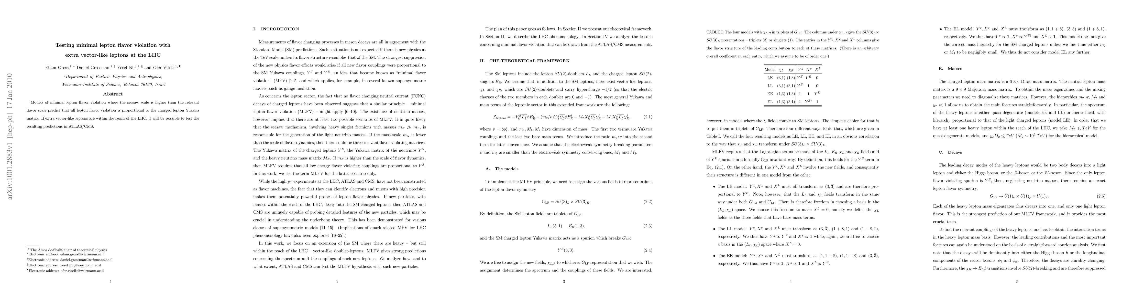 This paper explores how the presence of extra vector-like leptons at the LHC can be used to test models of minimal lepton flavor violation, where the seesaw scale is higher than the flavor scale, and all lepton flavor violation is proportional to the charged lepton Yukawa matrix. The study aims to provide experimental validation for these theoretical predictions using ATLAS/CMS data.