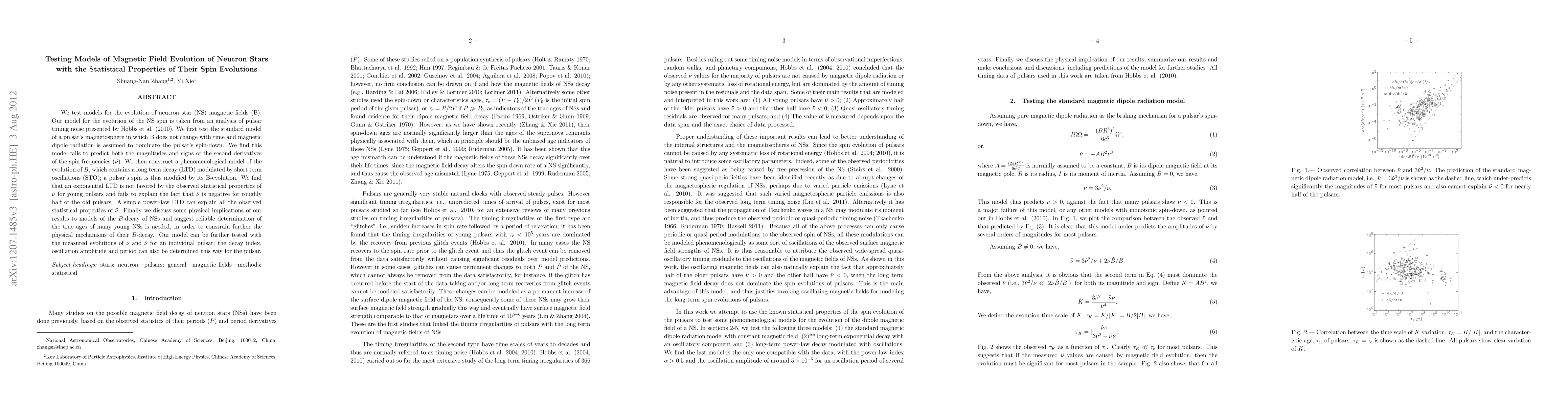 We test models for the evolution of neutron star (NS) magnetic fields (B). Our model for the evolution of the NS spin is taken from an analysis of pulsar timing noise presented by Hobbs et al. (2010). We first test the standard model of a pulsar's magnetosphere in which B does not change with time and magnetic dipole radiation is assumed to dominate the pulsar's spin-down. We find this model fails to predict both the magnitudes and signs of the second derivatives of the spin frequencies ($\ddot{\nu}$). We then construct a phenomenological model of the evolution of $B$, which contains a long term decay (LTD) modulated by short term oscillations (STO); a pulsar's spin is thus modified by its B-evolution. We find that an exponential LTD is not favored by the observed statistical properties of $\ddot{\nu}$ for young pulsars and fails to explain the fact that $\ddot{\nu}$ is negative for roughly half of the old pulsars. A simple power-law LTD can explain all the observed statistical properties of $\ddot{\nu}$. Finally we discuss some physical implications of our results to models of the B-decay of NSs and suggest reliable determination of the true ages of many young NSs is needed, in order to constrain further the physical mechanisms of their B-decay. Our model can be further tested with the measured evolutions of $\dot{\nu}$ and $\ddot{\nu}$ for an individual pulsar; the decay index, oscillation amplitude and period can also be determined this way for the pulsar.