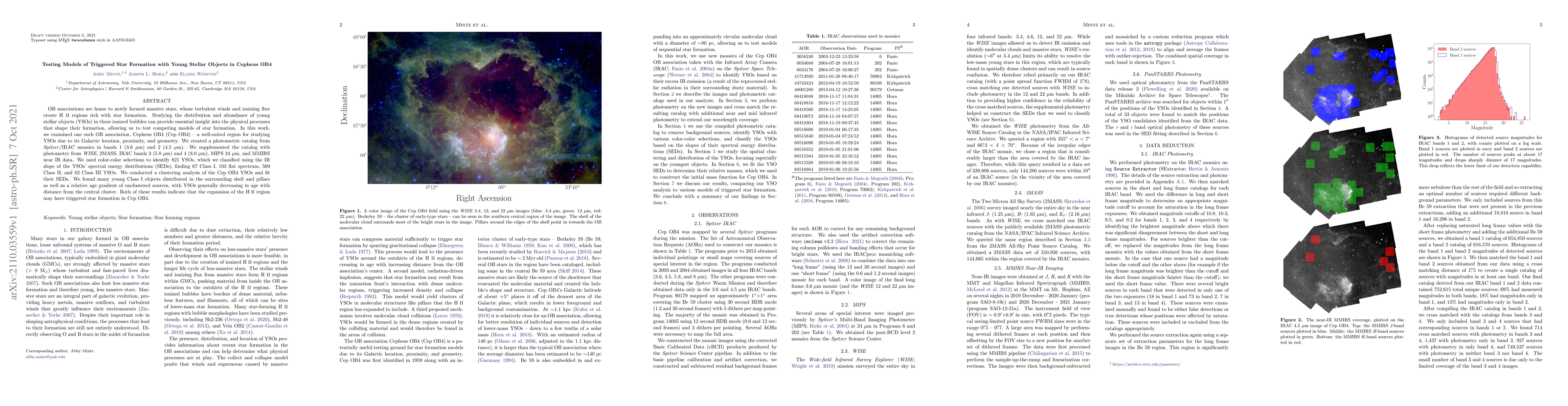 OB associations are home to newly formed massive stars, whose turbulent winds and ionizing flux create H II regions rich with star formation. Studying the distribution and abundance of young stellar objects (YSOs) in these ionized bubbles can provide essential insight into the physical processes that shape their formation, allowing us to test competing models of star formation. In this work, we examined one such OB association, Cepheus OB4 (Cep OB4) - a well-suited region for studying YSOs due to its Galactic location, proximity, and geometry. We created a photometric catalog from Spitzer/IRAC mosaics in bands 1 (3.6 $\mu$m) and 2 (4.5 $\mu$m). We supplemented the catalog with photometry from WISE, 2MASS, IRAC bands 3 (5.8 $\mu$m) and 4 (8.0 $\mu$m), MIPS 24 $\mu$m, and MMIRS near IR data. We used color-color selections to identify 821 YSOs, which we classified using the IR slope of the YSOs' spectral energy distributions (SEDs), finding 67 Class I, 103 flat spectrum, 569 Class II, and 82 Class III YSOs. We conducted a clustering analysis of the Cep OB4 YSOs and fit their SEDs. We found many young Class I objects distributed in the surrounding shell and pillars as well as a relative age gradient of unclustered sources, with YSOs generally decreasing in age with distance from the central cluster. Both of these results indicate that the expansion of the H II region may have triggered star formation in Cep OB4.