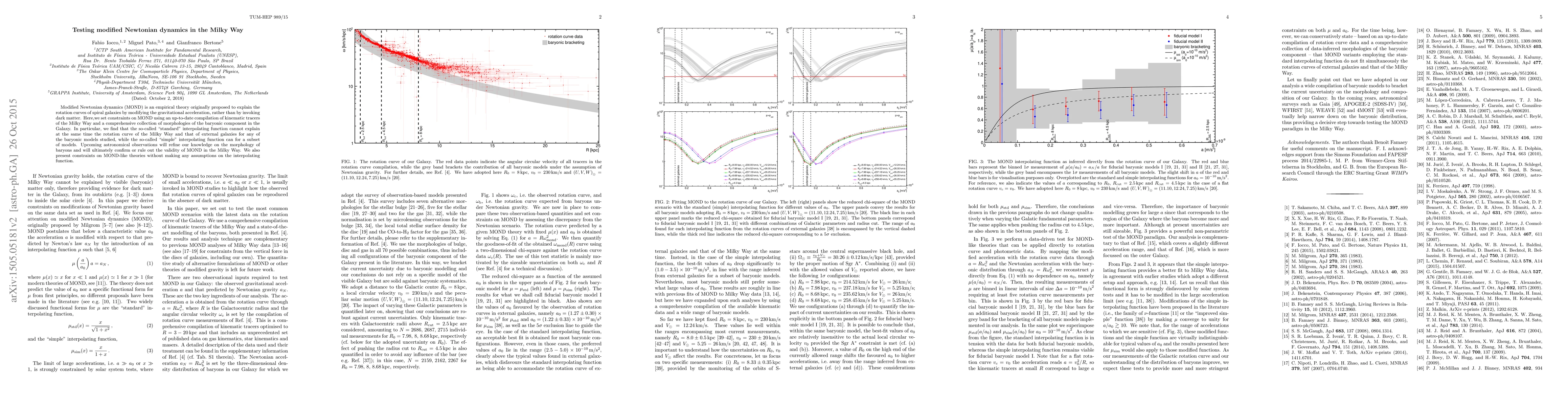 This paper tests modified Newtonian dynamics (MOND) in the Milky Way using kinematic tracers and baryonic morphologies, finding that the "standard" interpolating function fails to explain both Milky Way and external galaxy rotation curves, while the "simple" function works for some models. Future observations may confirm or refute MOND's validity.