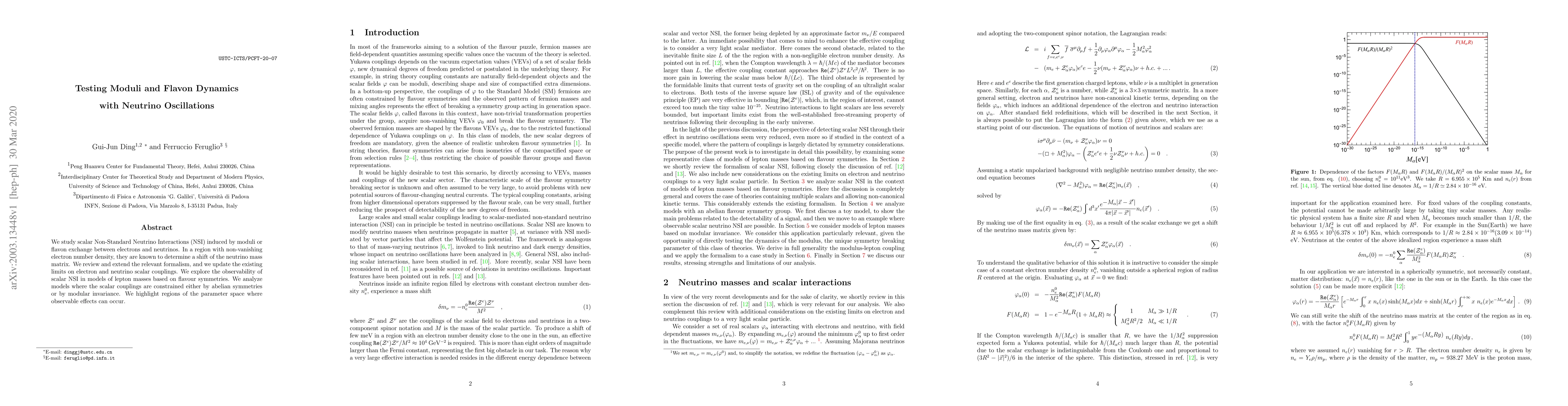 We study scalar Non-Standard Neutrino Interactions (NSI) induced by moduli or flavon exchange between electrons and neutrinos. In a region with non-vanishing electron number density, they are known to determine a shift of the neutrino mass matrix. We review and extend the relevant formalism, and we update the existing limits on electron and neutrino scalar couplings. We explore the observability of scalar NSI in models of lepton masses based on flavour symmetries. We analyze models where the scalar couplings are constrained either by abelian symmetries or by modular invariance. We highlight regions of the parameter space where observable effects can occur.