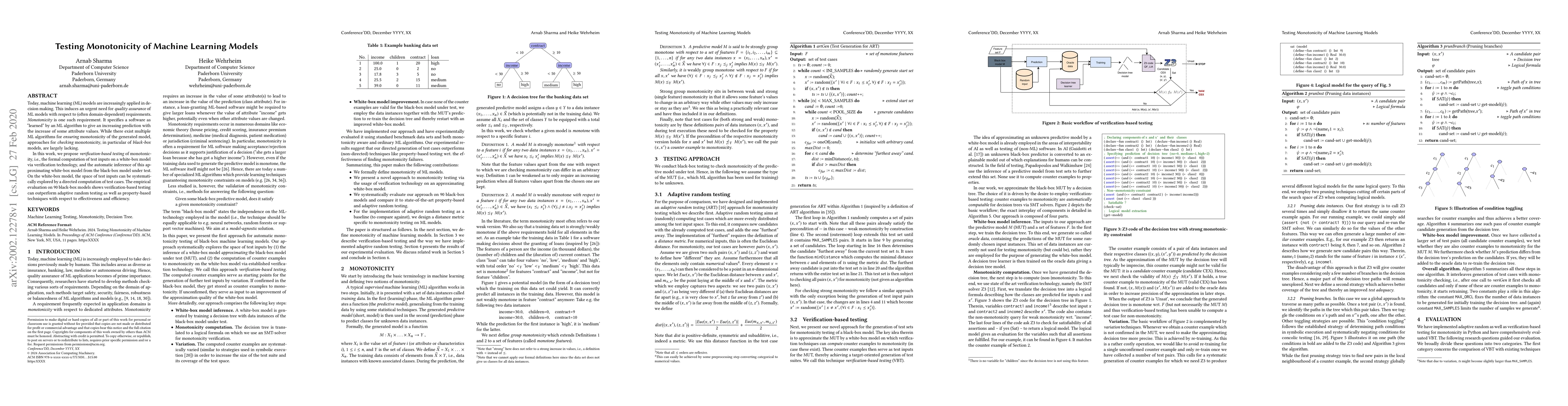 This paper proposes a verification-based testing method to ensure monotonicity in machine learning models, especially for black-box models. It outperforms adaptive random testing and property-based techniques in effectiveness and efficiency, as demonstrated through an empirical evaluation on 90 black-box models.