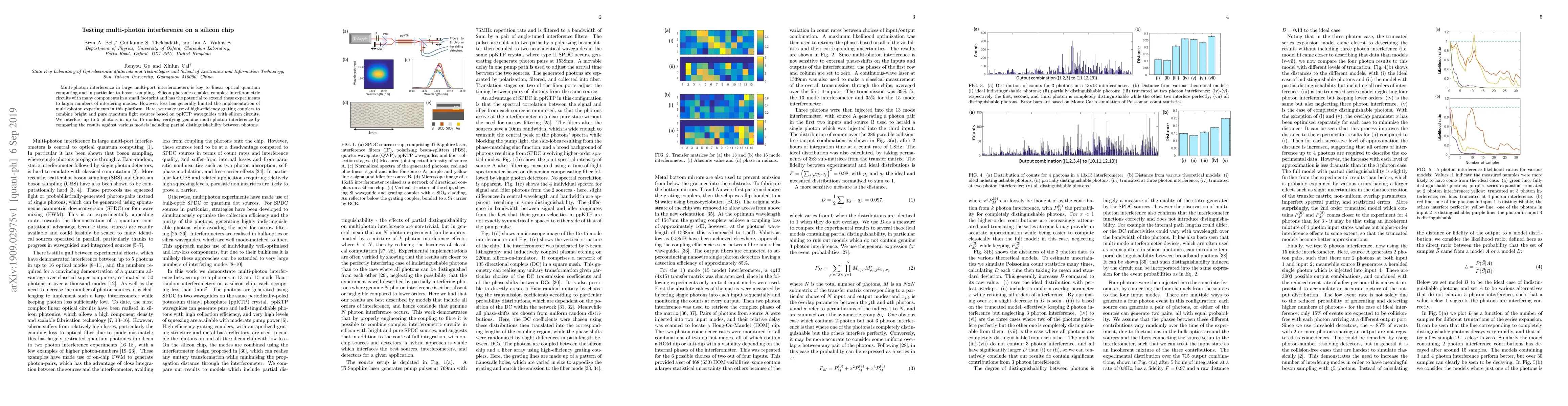 This paper demonstrates the successful interference of up to 5 photons in up to 15 modes on a silicon chip using high-efficiency grating couplers, enabling complex multi-photon experiments despite inherent loss issues, and verifies genuine multi-photon interference through model comparisons.