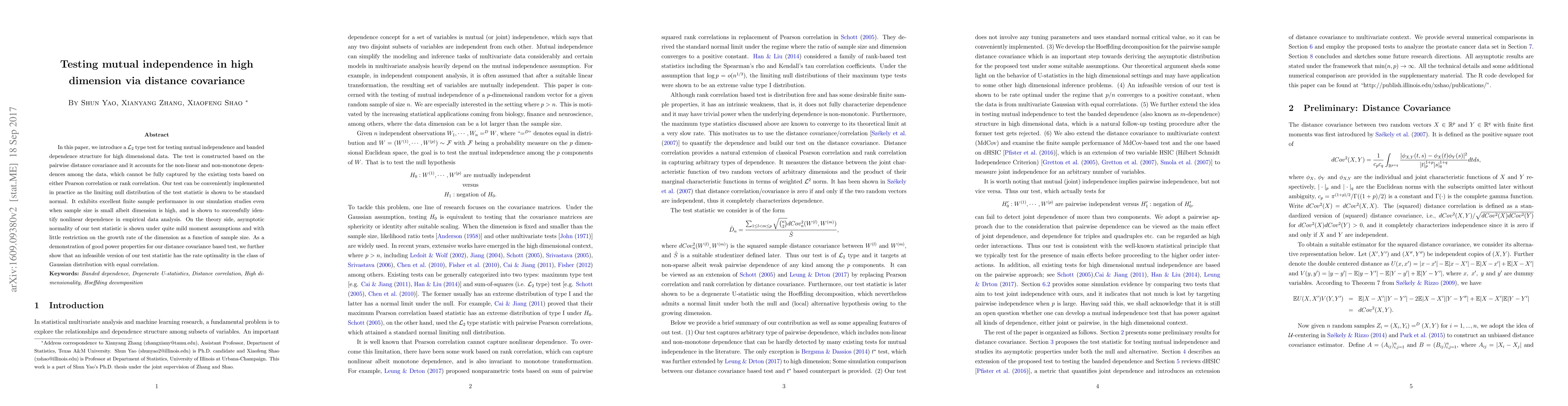 This paper proposes a new ${\mathcal L}_2$ type test for mutual independence in high-dimensional data, based on pairwise distance covariance, which effectively captures non-linear and non-monotone dependencies. The test statistic's limiting null distribution is standard normal, demonstrating strong performance even with small sample sizes.