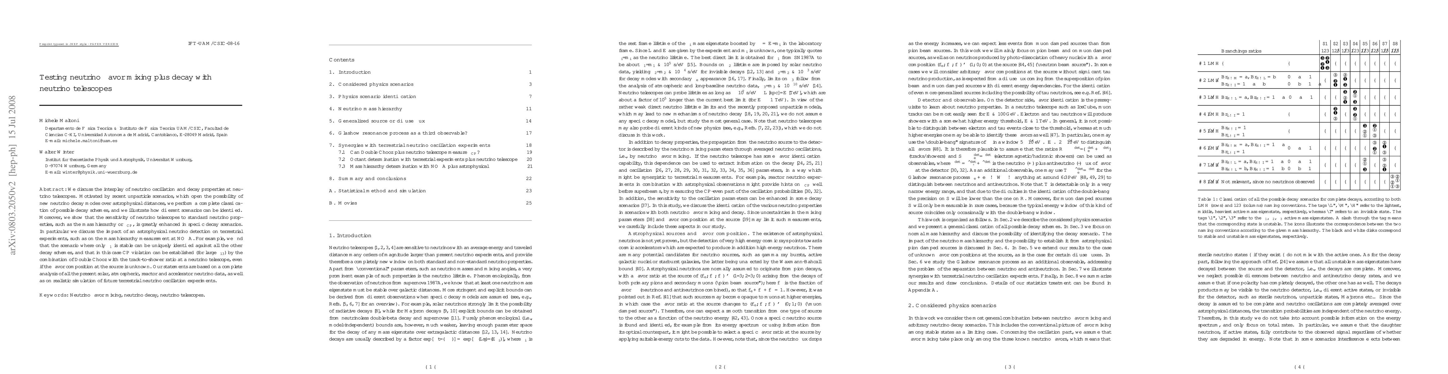 We discuss the interplay of neutrino oscillation and decay properties at neutrino telescopes. Motivated by recent unparticle scenarios, which open the possibility of new neutrino decay modes over astrophysical distances, we perform a complete classification of possible decay schemes, and we illustrate how different scenarios can be identified. Moreover, we show that the sensitivity of neutrino telescopes to standard neutrino properties, such as the mass hierarchy or delta_CP, is greatly enhanced in specific decay scenarios. In particular we discuss the impact of an astrophysical neutrino detection on terrestrial experiments, such as on the mass hierarchy measurement at NOvA. For example, we find that the scenario where only nu_1 is stable can be uniquely identified against all the other decay schemes, and that in this case CP violation can be established (for large theta_13) by the combination of Double Chooz with the track-to-shower ratio at a neutrino telescope, even if the flavor composition at the source is unknown. Our statements are based on a complete analysis of all the present solar, atmospheric, reactor and accelerator neutrino data, as well as on realistic simulation of future terrestrial neutrino oscillation experiments.