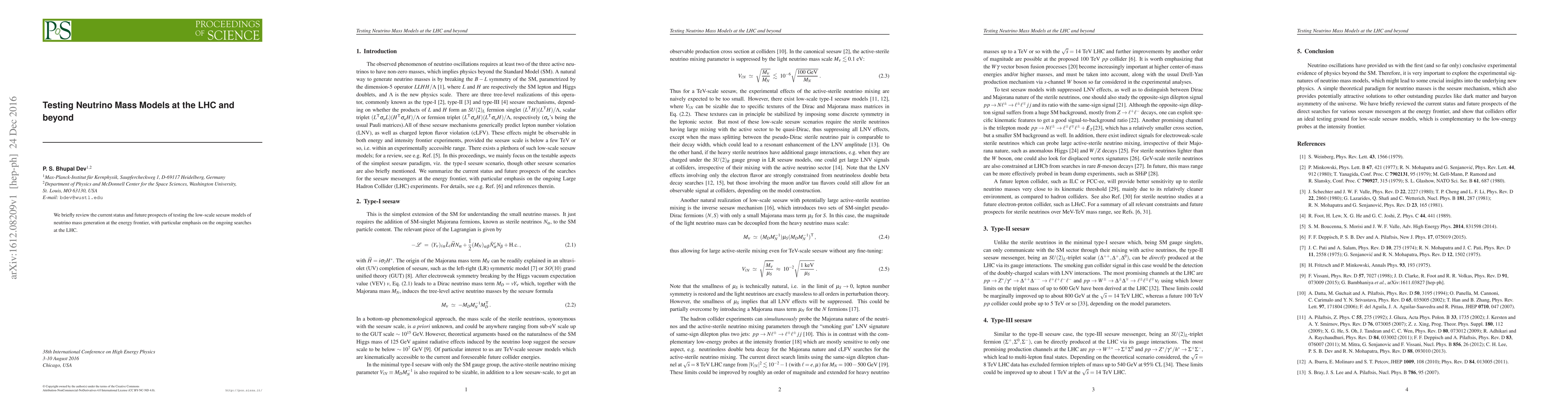 The paper reviews the current status and future prospects of testing low-scale seesaw models of neutrino mass generation at the energy frontier, with a focus on ongoing searches at the LHC.
