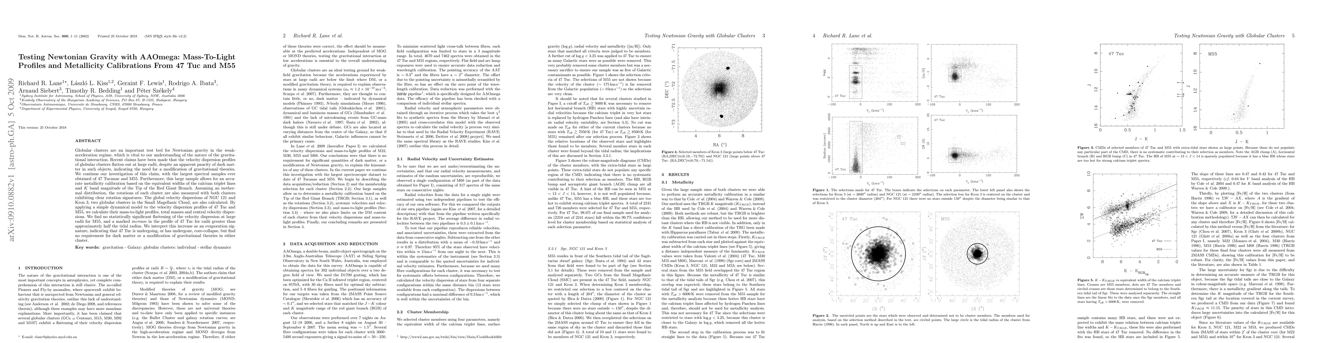 Globular clusters are an important test bed for Newtonian gravity in the weak-acceleration regime, which is vital to our understanding of the nature of the gravitational interaction. Recent claims have been made that the velocity dispersion profiles of globular clusters flatten out at large radii, despite an apparent paucity of dark matter in such objects, indicating the need for a modification of gravitational theories. We continue our investigation of this claim, with the largest spectral samples ever obtained of 47 Tucanae and M55. Furthermore, this large sample allows for an accurate metallicity calibration based on the equivalent widths of the calcium triplet lines and K band magnitude of the Tip of the Red Giant Branch. Assuming an isothermal distribution, the rotations of each cluster are also measured with both clusters exhibiting clear rotation signatures. The global velocity dispersions of NGC 121 and Kron 3, two globular clusters in the Small Magellanic Cloud, are also calculated. By applying a simple dynamical model to the velocity dispersion profiles of 47 Tuc and M55, we calculate their mass-to-light profiles, total masses and central velocity dispersions. We find no statistically significant flattening of the velocity dispersion at large radii for M55, and a marked increase in the profile of 47 Tuc for radii greater than approximately half the tidal radius. We interpret this increase as an evaporation signature, indicating that 47 Tuc is undergoing, or has undergone, core-collapse, but find no requirement for dark matter or a modification of gravitational theories in either cluster.