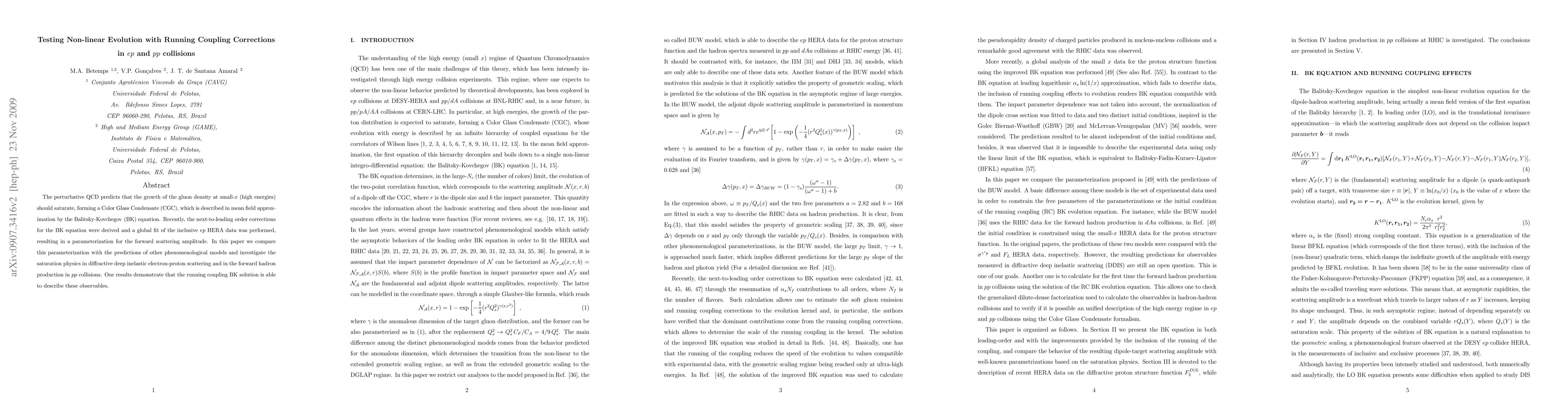 This paper tests non-linear evolution in $ep$ and $pp$ collisions using running coupling corrections in the Balitsky-Kovchegov equation, showing that it can describe saturation physics in diffractive scattering and forward hadron production. It compares these results against other phenomenological models.