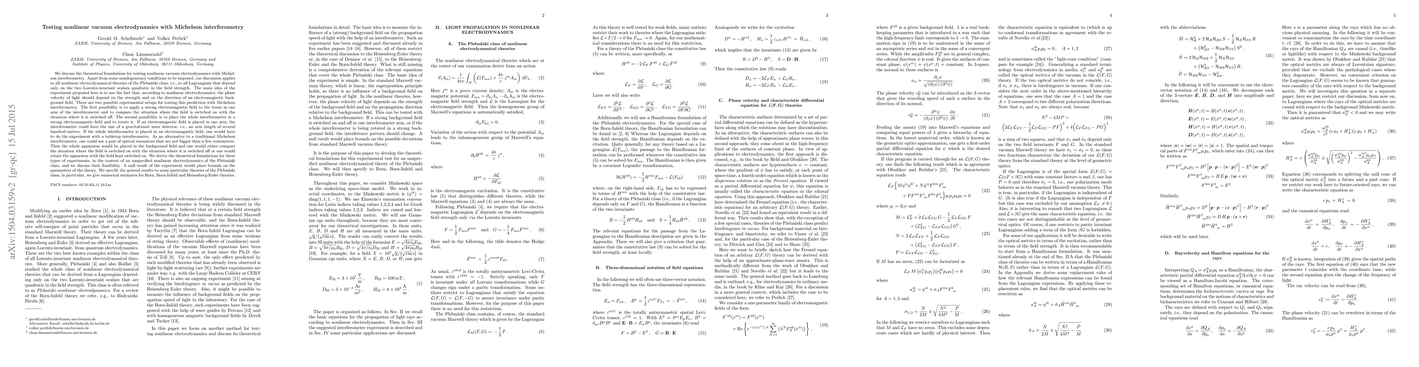 We discuss the theoretical foundations for testing non-linear vacuum electrodynamics with Michelson interferometry. Apart from some non-degeneracy conditions to be imposed, our discussion applies to all non-linear electrodynamical theories of the Pleba\'nski class, i.e., to all Lagrangians that depend only on the two Lorentz-invariant scalars quadratic in the field strength. The main idea of the experiment proposed here is to use the fact that, according to non-linear electrodynamics, the phase velocity of light should depend on the strength and on the direction of an electromagnetic background field. There are two possible experimental set-ups for testing this prediction with Michelson interferometry. The first possibility is to apply a strong electromagnetic field to the beam in one arm of the interferometer and to compare the situation where the field is switched on with the situation where it is switched off. The second possibility is to place the whole interferometer in a strong electromagnetic field and to rotate it. If an electromagnetic field is placed in one arm, the interferometer could have the size of a gravitational wave detector, i.e., an arm-length of several hundred meters. If the whole interferometer is placed in an electromagnetic field, one would have to do the experiment with a table-top interferometer. [...] We specify the general results to some particular theories of the Pleba\'nski class; in particular, we give numerical estimates for Born, Born-Infeld and Heisenberg-Euler theories.