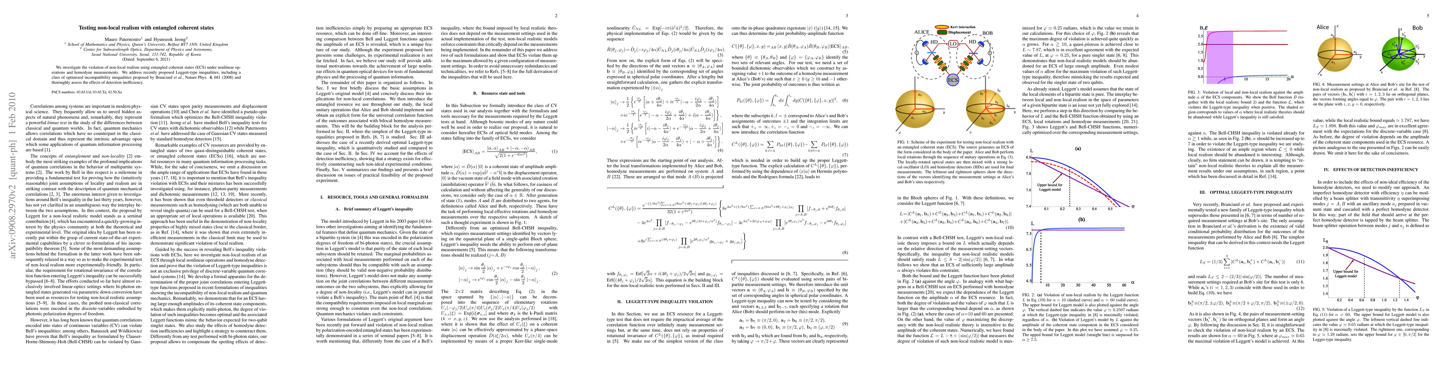 This paper examines the violation of non-local realism through entangled coherent states under nonlinear operations and homodyne measurements, focusing on Leggett-type inequalities and the impact of detection inefficiency. The study provides a comprehensive evaluation of these inequalities in the context of quantum entanglement.